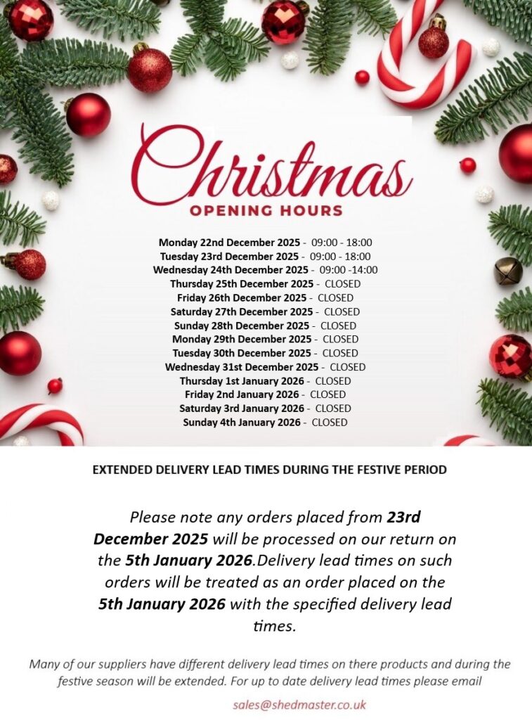 Our Sales Centre and Installation Team is open as usual from 8am-6pm Monday to Friday for all your festive orders and installations apart from on the following key dates: