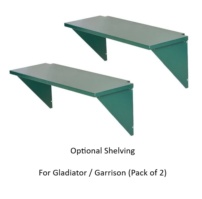 Includes: 4 x Heavy-duty metal shelves – ideal for bike spares.