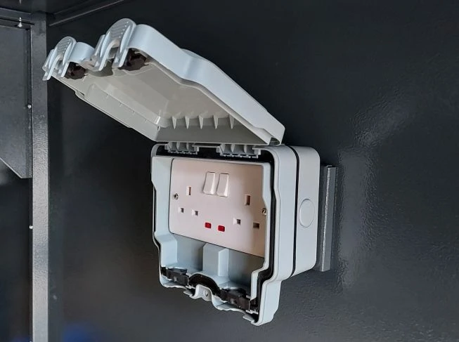 Asgard and SHEDMASTER does not fit the electric sockets as part of the installation option.