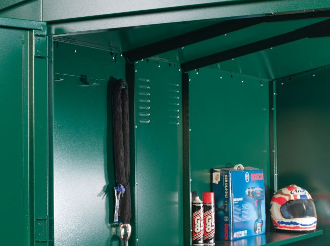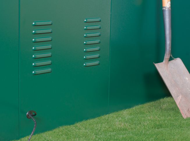 The Asgard 7’x14’5 Gladiator Heavy Duty Metal Quad Bike & ATV Storage Garage – with 5 Point Locking System is the largest and heaviest in the Asgard storage range measuring 7ft wide x 14ft deep, perfect for housing 1-2 all terrain vehicles (ATVs). With double doors and ramp, its easy to manoeuvre your quad bikes in and out. As our other Gladiator units, this storage shed is made from tough (weatherproof) galvanised steel and has undergone vigorous testing as part of the LPCB Level 1 security test and is Secured by Design (Police approved) and UK Locksmith approved, ensuring your ATVs are safe and secure. The middle panels of the unit feature a unique built-in ventilation system to help maintain airflow inside the unit and reduce condensation whilst allowing fumes to escape.