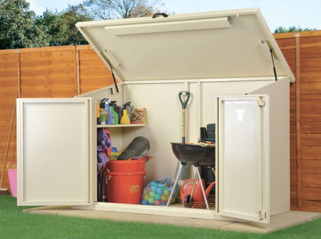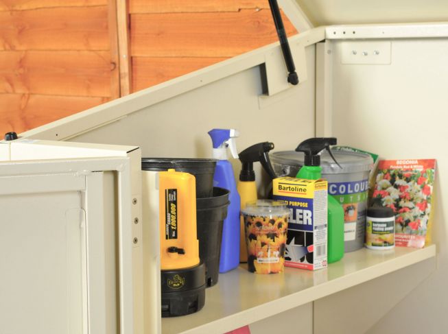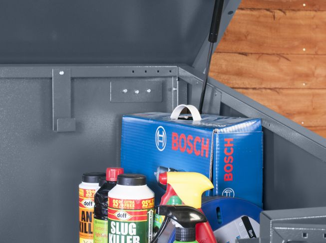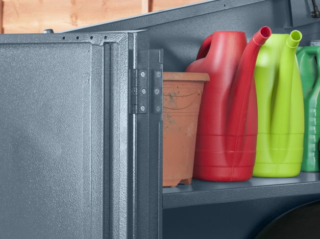 The Asgard 7’x4′ Access Heavy Duty Metal Shed is an all metal garden shed designed to give you the easiest possible access to your garden tools and equipment. The shed features a heavy-duty integral metal base, two large (reinforced) doors and a reinforced gas lift lid. The shed has a tough 3-point locking system.