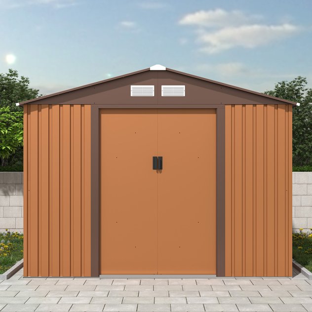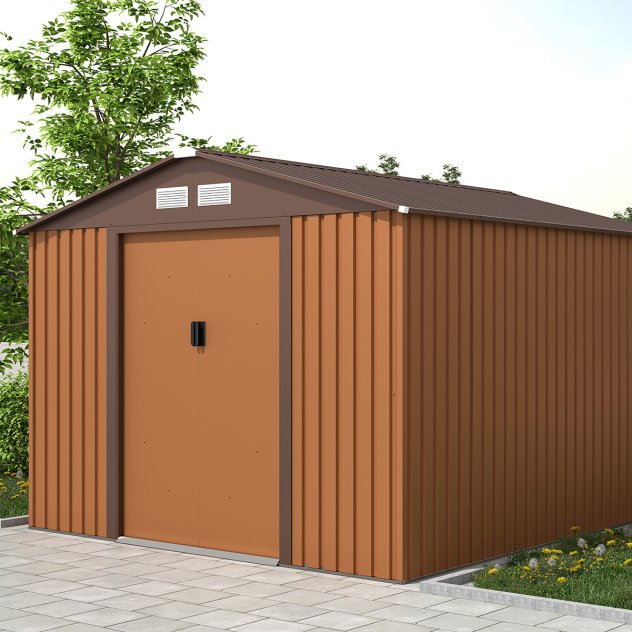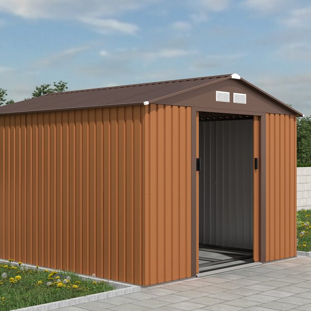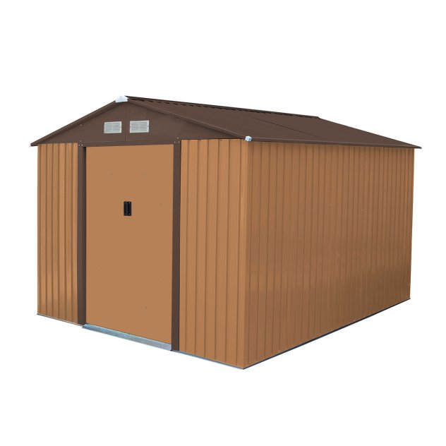 The perfect storage solution for any garden this highly resilient Charles Bentley 8×10 Metal Apex Shed with Foundation Grid – Brown is great for storing a wide range of garden items.