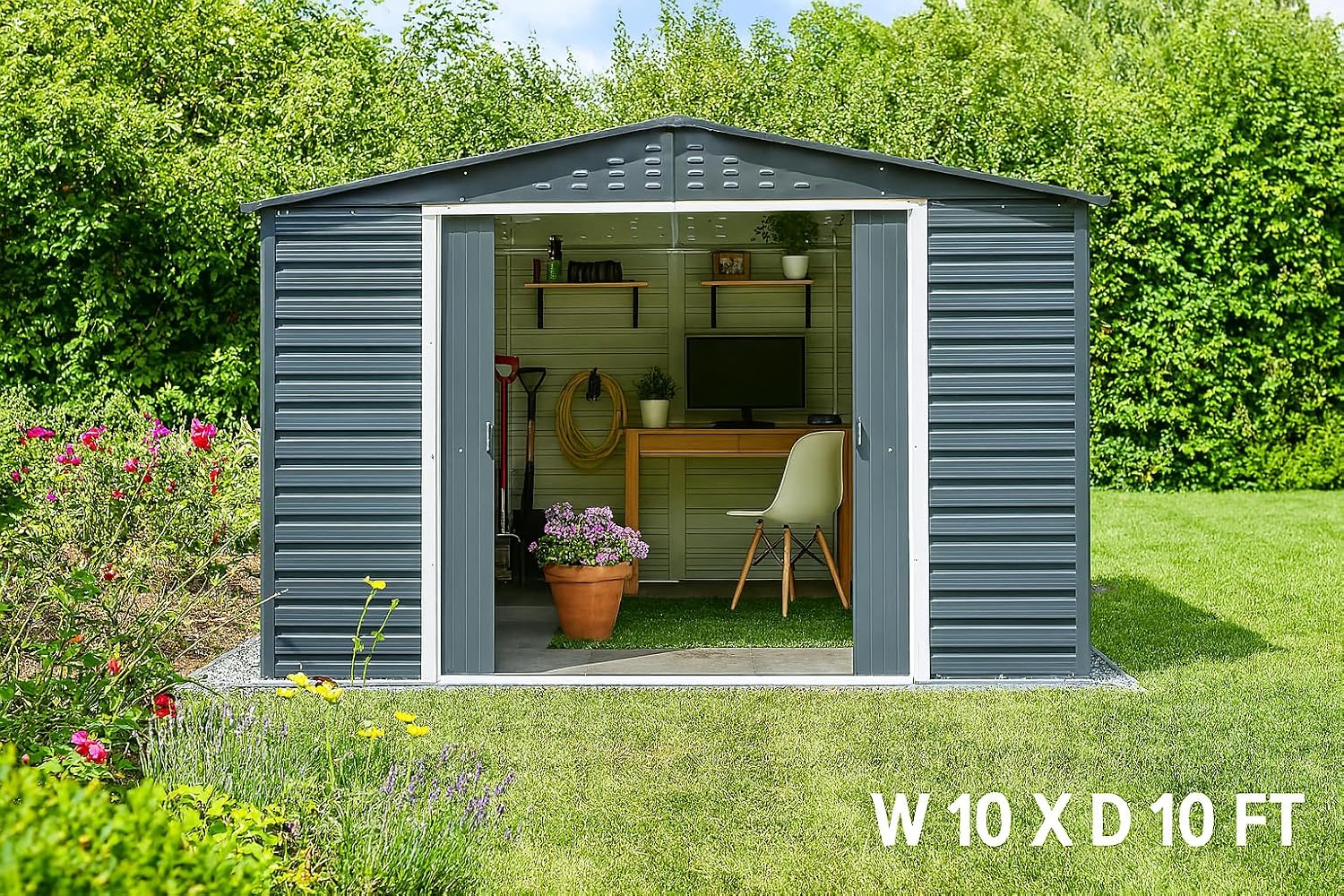 The Duramax 10×10 Alpine Metal Apex Garden Shed – Anthracite is the perfect solution for those looking for durable, secure, and attractive outdoor storage.