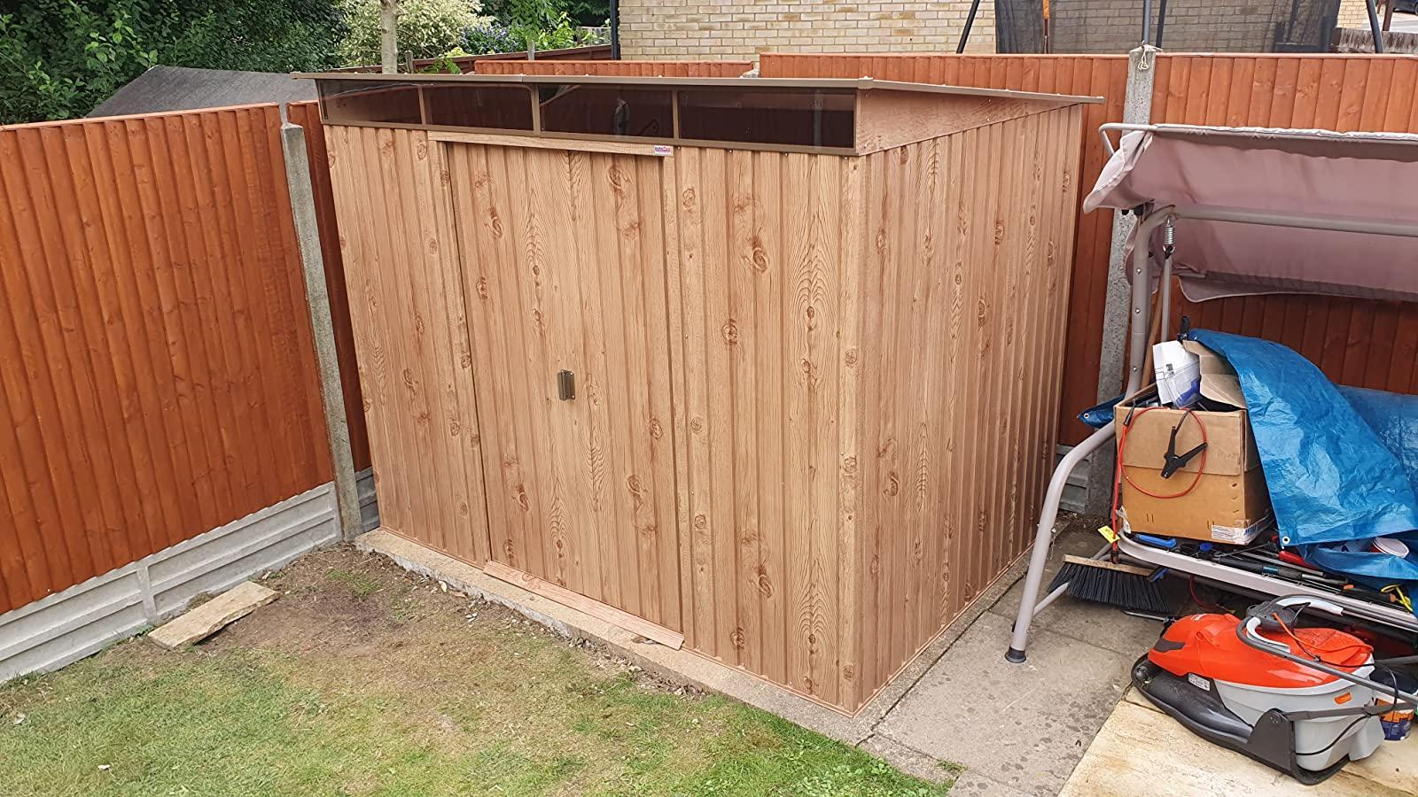 The Duramax 8×6 Metal Pent Garden Shed Woodgrain with Skylight is large enough to store bikes, mowers and other recreational, lawn and garden equipment. The sheds are windowless for out-of-sight storage. This range reaches the highest standards of quality and value.