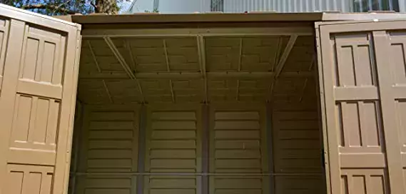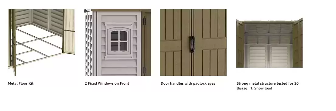 The high heavy-duty double doors make it easy to enter and store items. The doors when open reveals extra-large storage capacity. All the parts are packed neatly into the carton and the shed has easy to read and follow assembly instructions.