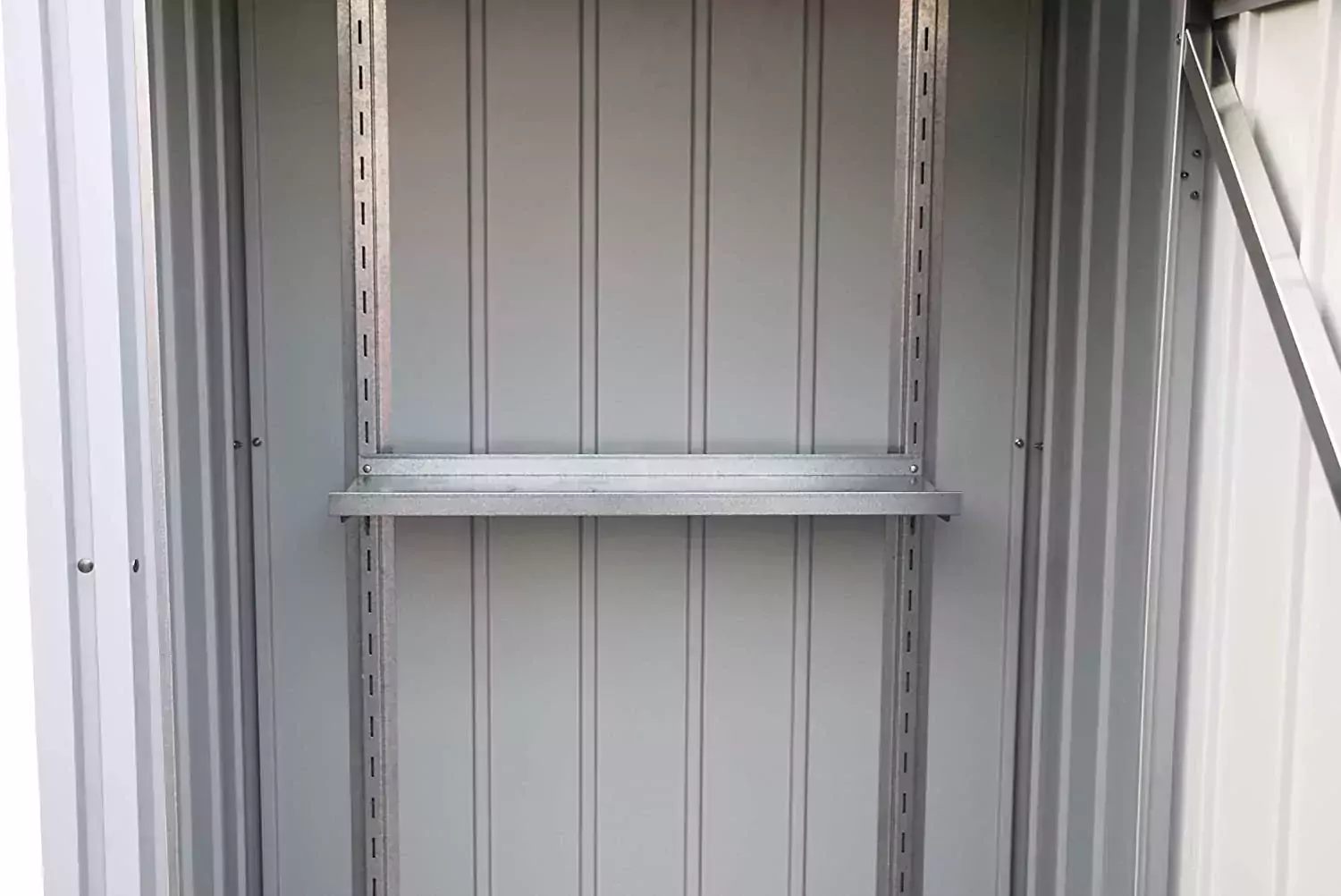 Store, organize, and protect your garden tools and other equipment, without limiting your living space. It has double thick metal panels offering a constant rust-free lifetime, making it stronger and ensuring that it will not dent, rust, mildew, or rot. It includes heavy-duty galvanized steel foundation to elevate the locker and provide protection from water flow.