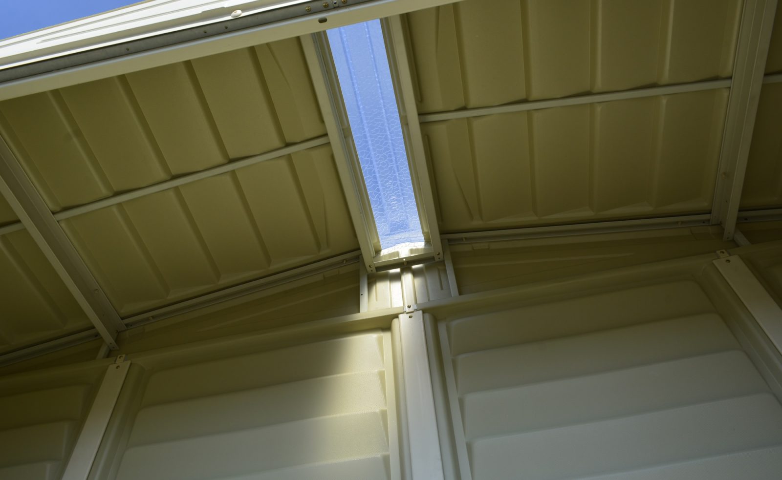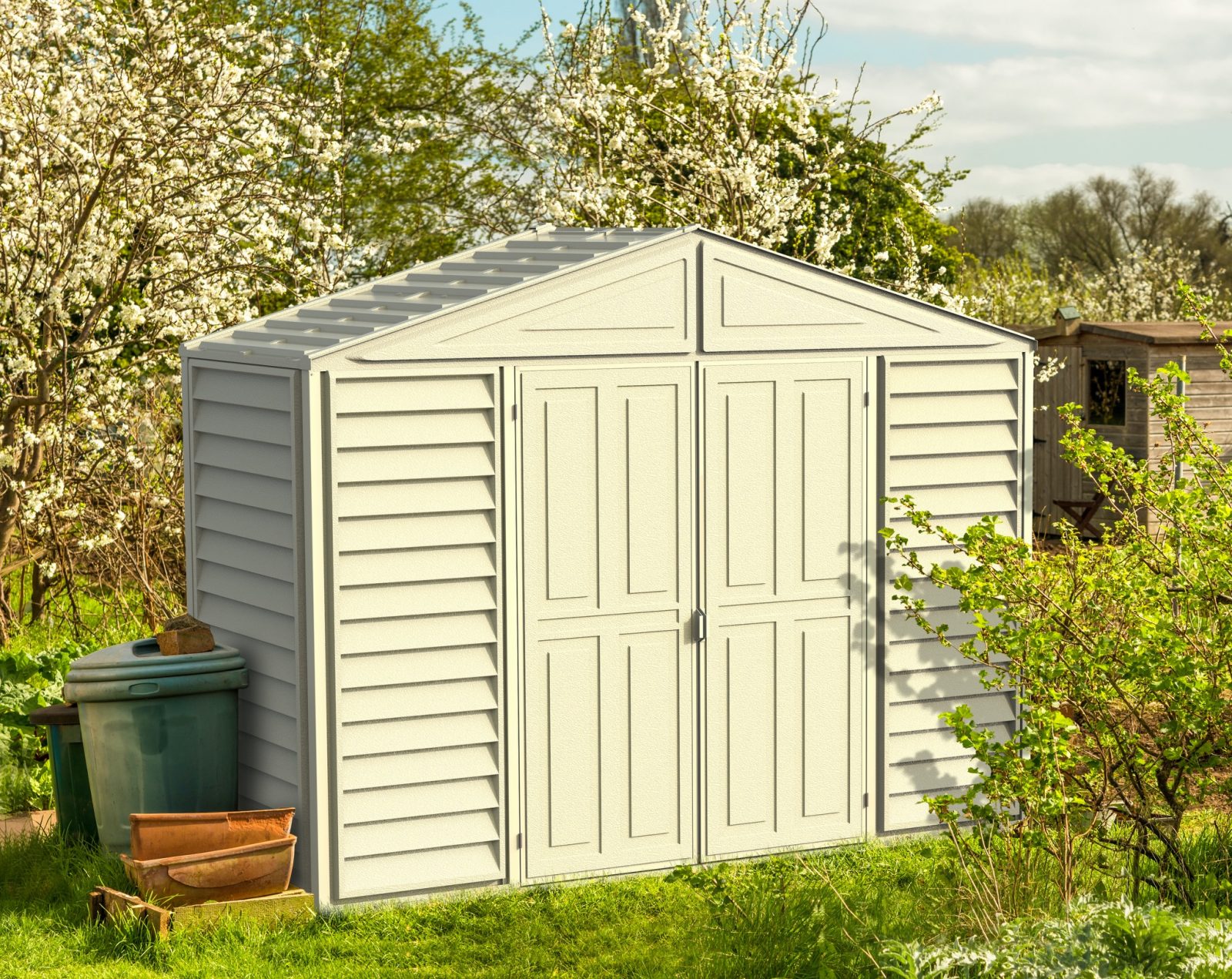 DURAMAX vinyl sheds are the highest specification lightweight garden sheds in the market. Apart from the high grade of PVC and steel, they have vents to allow airflow and a skylight as standard. Each Duramax apex shed has pad-lockable hinge doors. One door features internal locking bolts allowing access to all your stored items through either a single or double door opening.