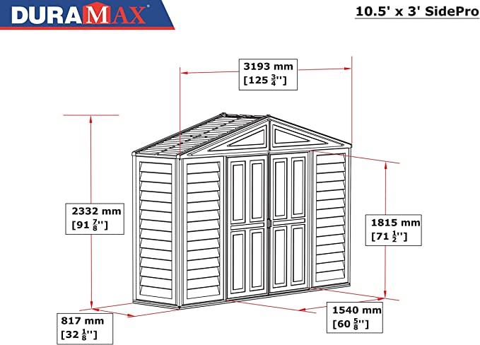 The Duramax SidePro Vinyl 10.5’x3′ Apex Shed is ideal for most gardens. This storage shed was designed to meet the height requirements for most communities.