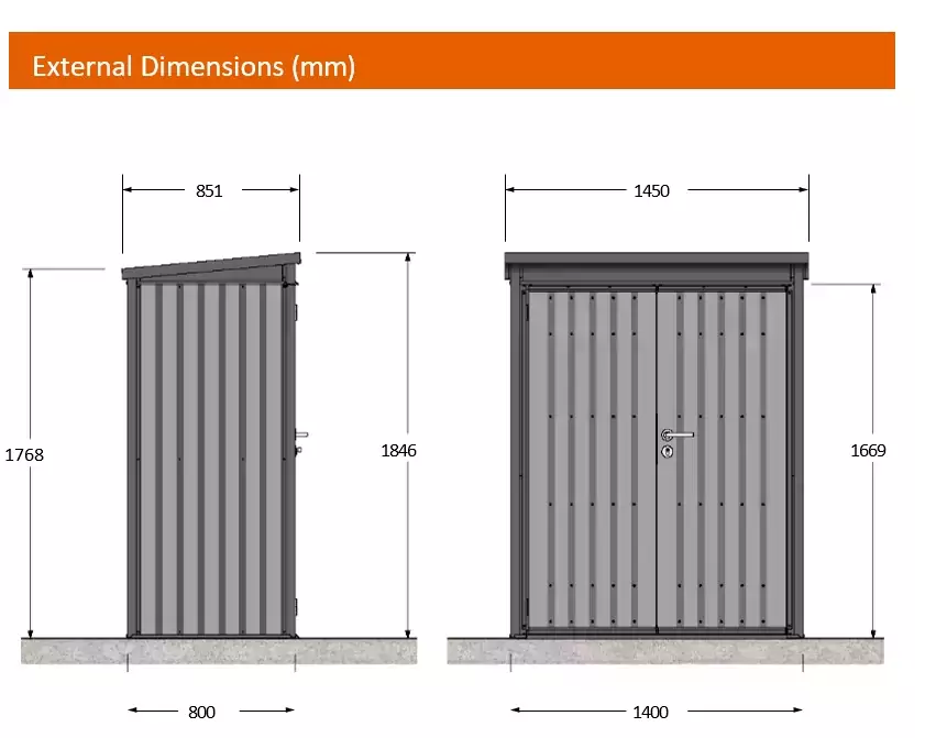 Constructed from High Grade Corrosion Resistant Galvanised 0.6mm Thick Steel (EN10346) makes the shed maintenance free and comes complete with a lifetime guarantee against corrosion.