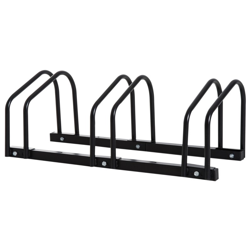 Store bicycles securely with this HOMCOM Small Metal Bicycle Parking Rack – Black, which can hold up to three bikes.