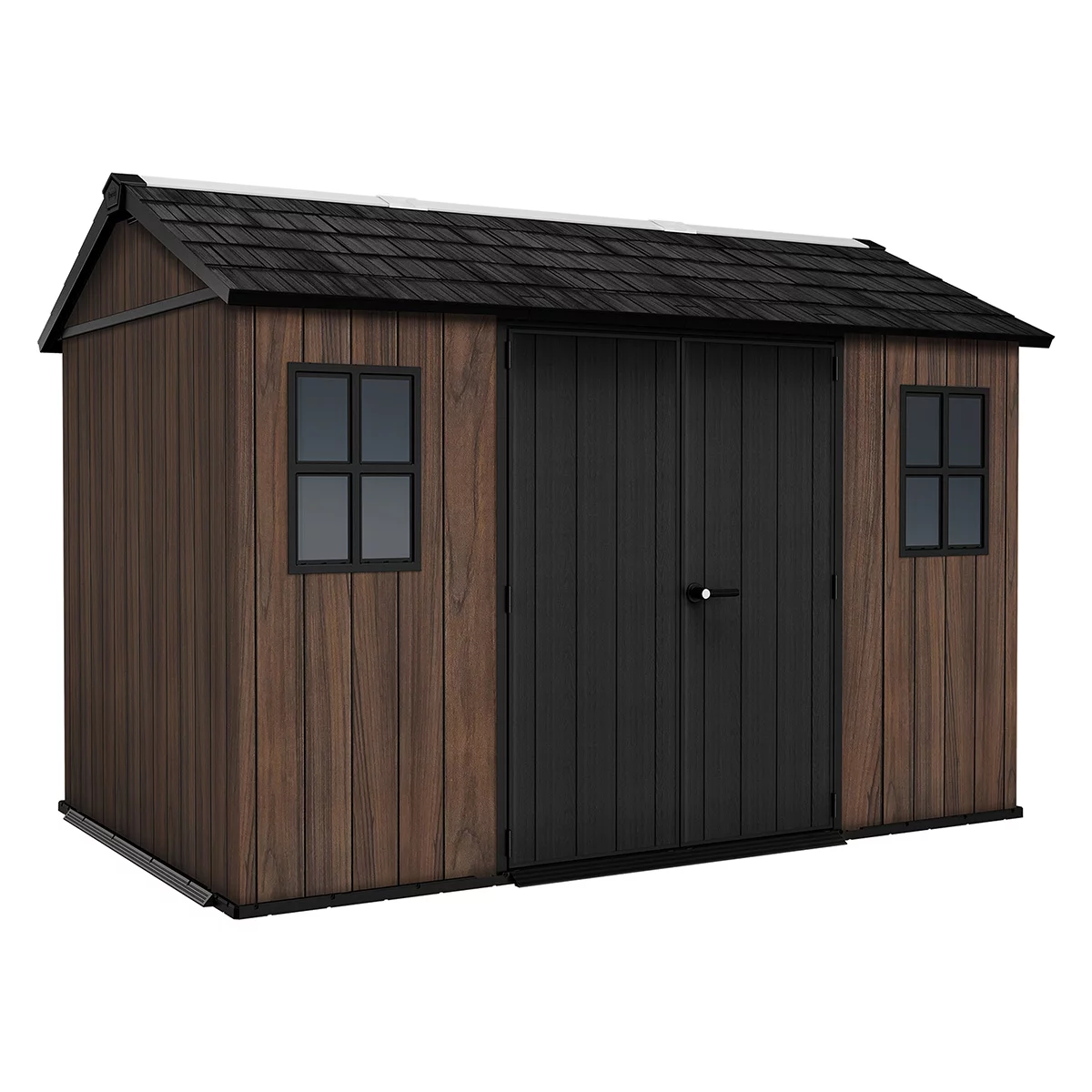 The Keter 11’x 7.5′ Rosewood Plastic Shed with Side Entry allows you 2 ways to build meaning you can decide the set-up and placement of the doors and windows, whether it?s a shed that is narrow and deep that is ideal for storing larger items, or a wide shed that offers easy access and visibility to all your belongings.