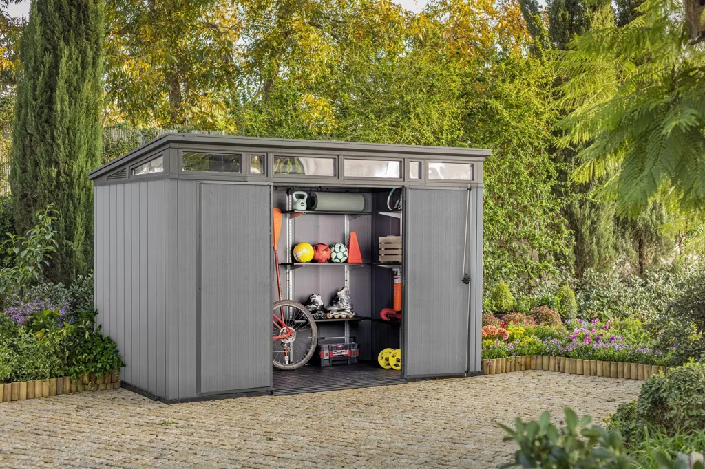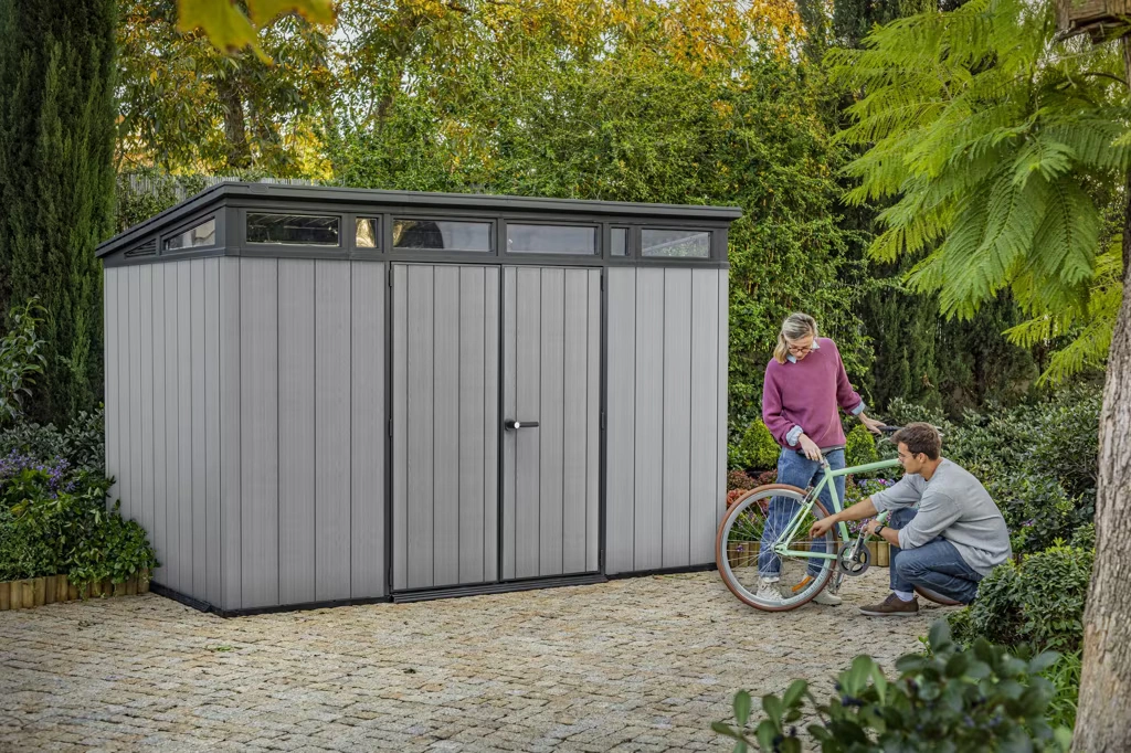The Keter 11’x 7′ Artisan 2 Heavy Duty Plastic Pent Shed – New Look Grey offers a robust, weather?resistant design that can withstand winds of up to 145 km/h, ensuring year?round reliability.