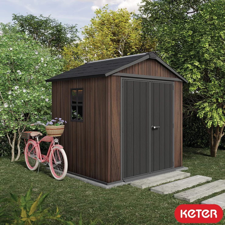 The Keter 7.5′ x 7′ Rosewood Front Entry Plastic Shed makes the perfect choice for your outdoor space, the Premier combines classic style with functionality.
