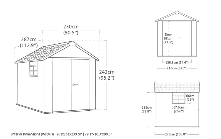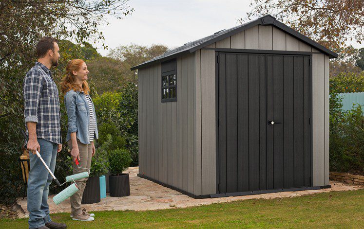 This rustic chic style shed also has a high enough ceiling to allow an adult to move around inside freely inside, wide double doors for easily moving things in and out, paintable walls for easy customisation complete with a skylight . The Keter 7.5′ x 9′ Oakland Heavy Duty Plastic Shed is easy to assemble with its pre-cut tongue and groove panels and comes with a stainless locking system for additional security (lock not included).