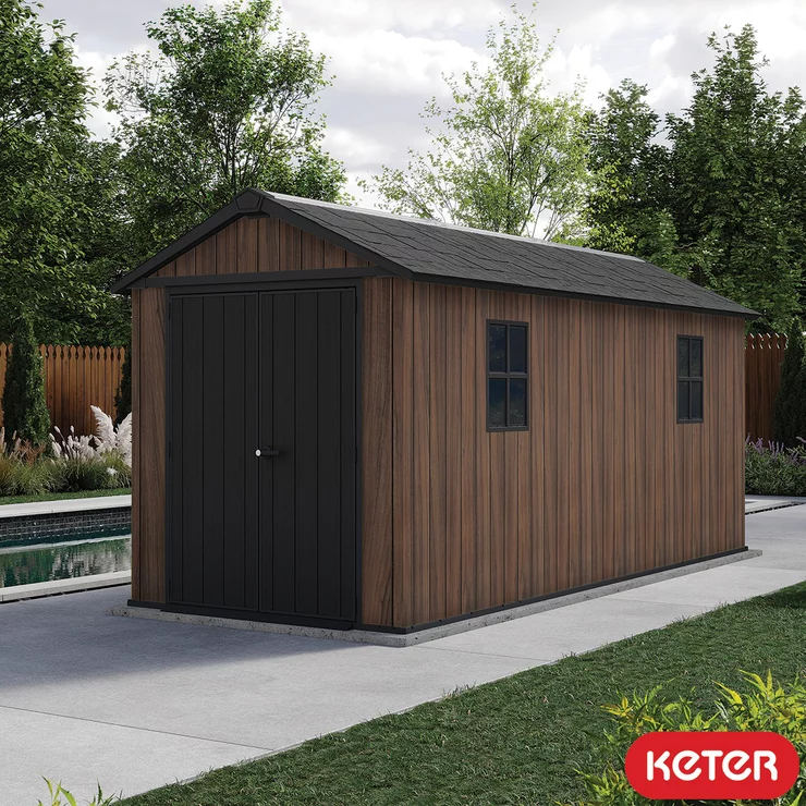 The Keter 7.5’x 15′ Rosewood Plastic Shed with Front Entry allows you 2 ways to build meaning you can decide the set-up and placement of the doors and windows, whether it?s a shed that is narrow and deep that is ideal for storing larger items, or a wide shed that offers easy access and visibility to all your belongings.
