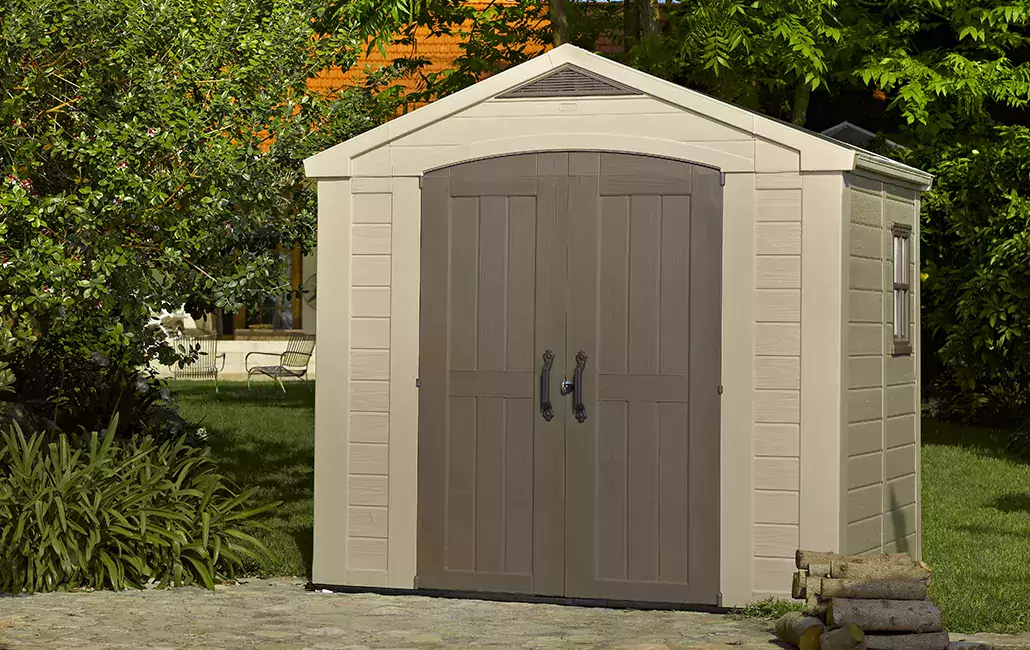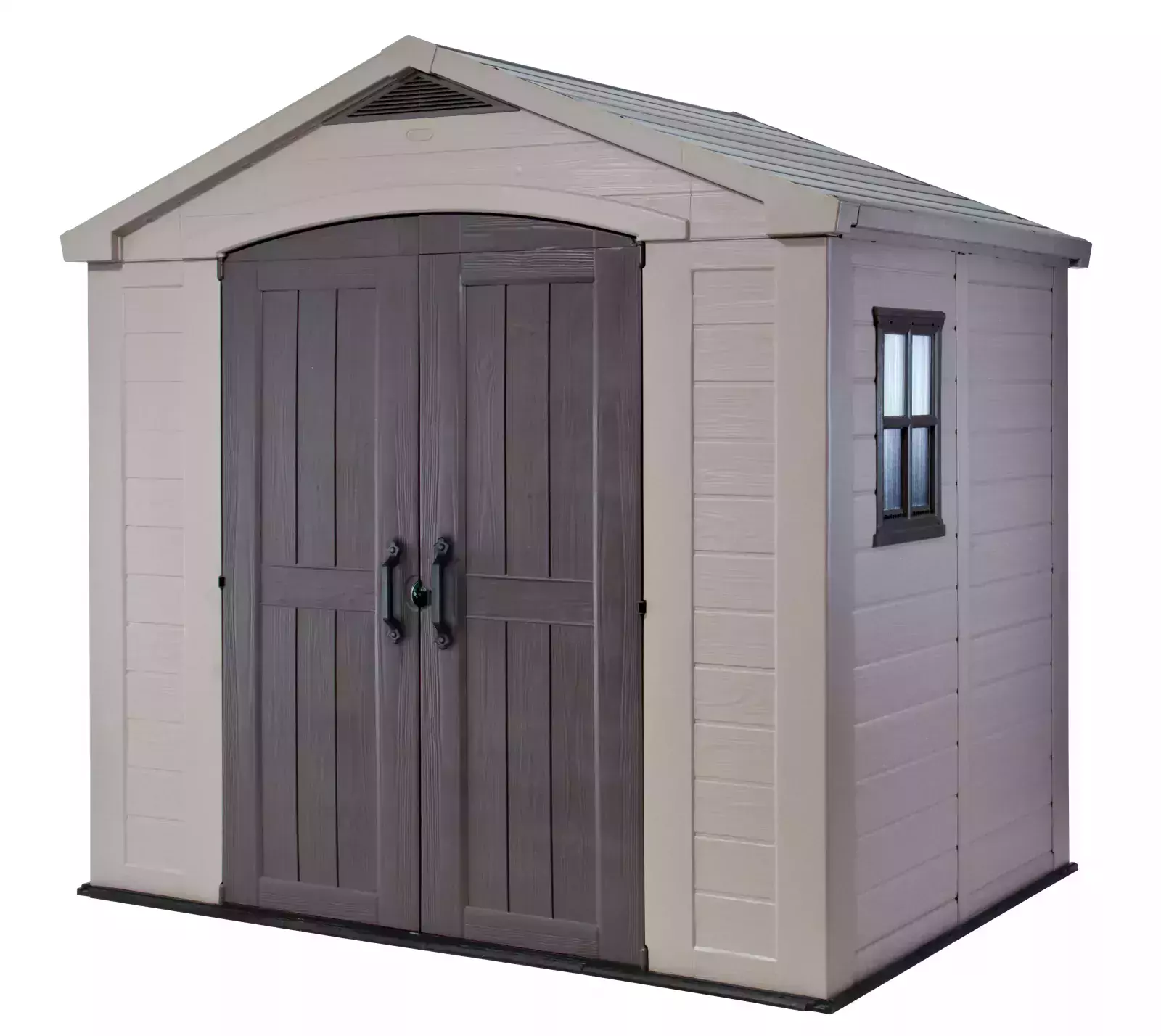 The Keter 8’x6′ Factor Heavy Duty Plastic Garden Shed – Beige will provide ample space for a wide variety of tools and equipment.