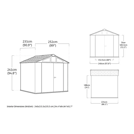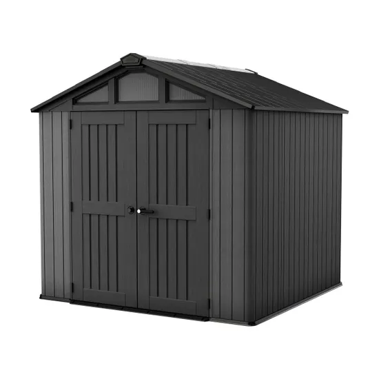 The Keter 8’x8′ Stronghold Heavy Duty Plastic Shed – Grey delivers the perfect balance of elegant design, robust construction, and generous storage space, ideal for keeping your garden and outdoor equipment organised, secure, and protected.
