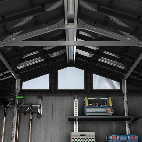 Constructed from Evotech+ resin composite panels, the shed offers the timeless appearance of traditional materials without the upkeep – no rotting, peeling, denting, or fading. The 19mm double wall engineering ensures exceptional strength and durability, making it a reliable choice for year round use.