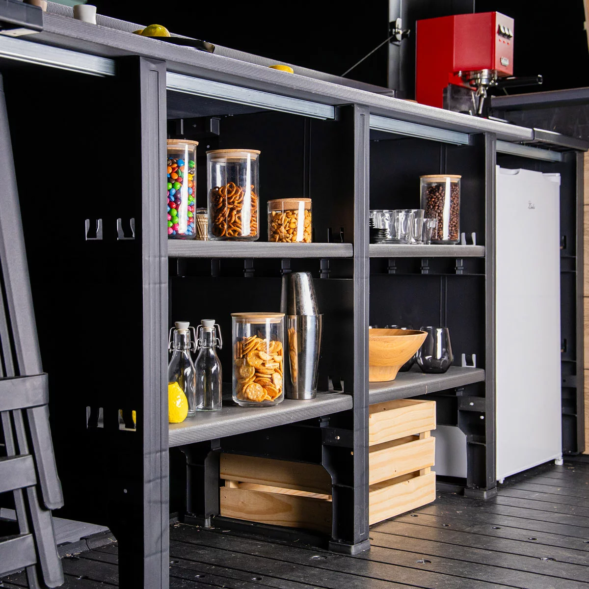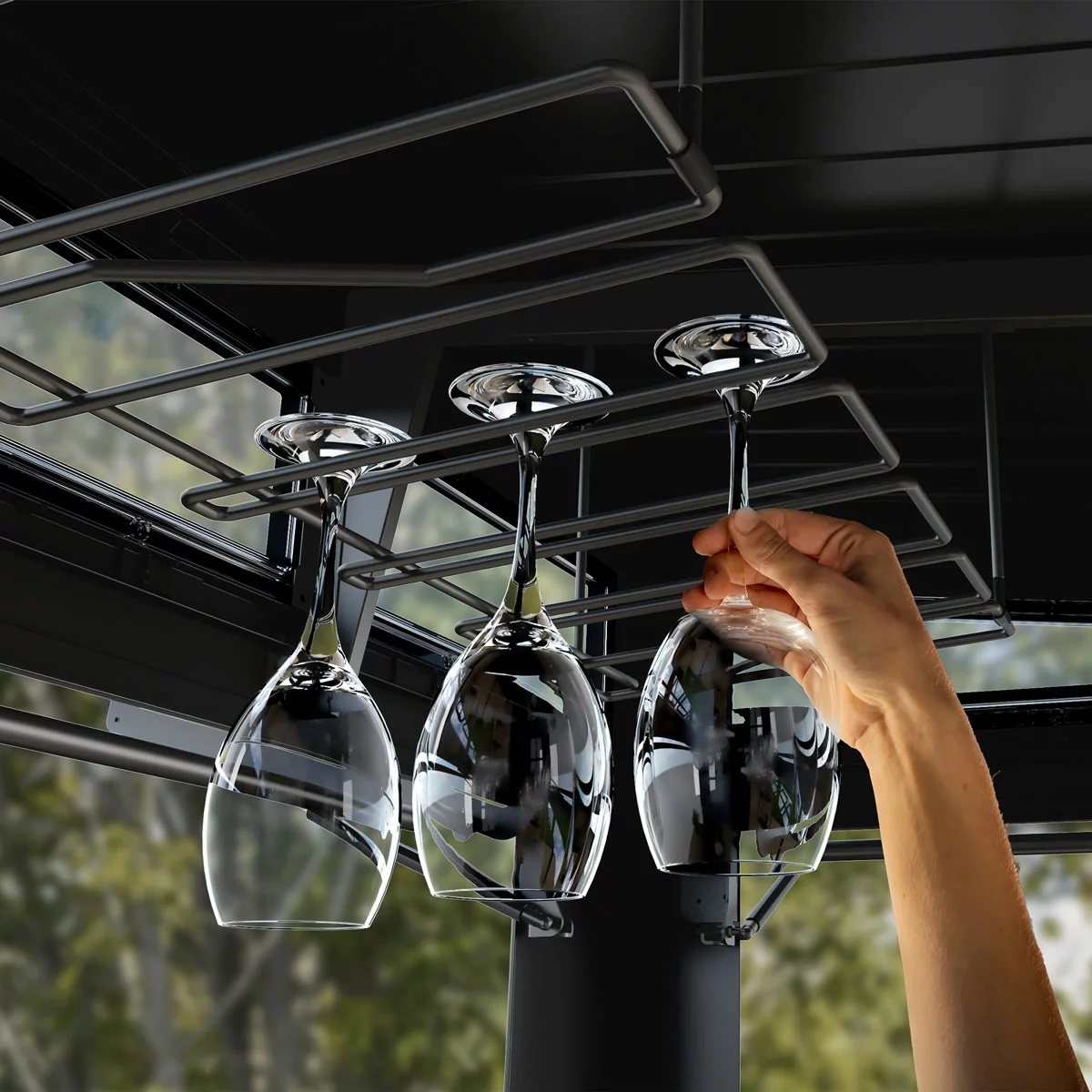 The overbar glass rack keeps your glasses neatly stored and within easy reach
