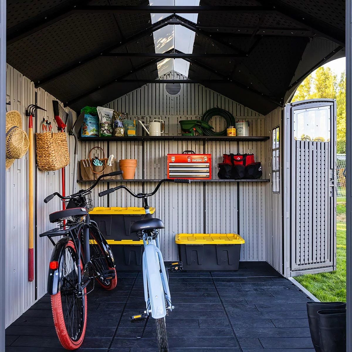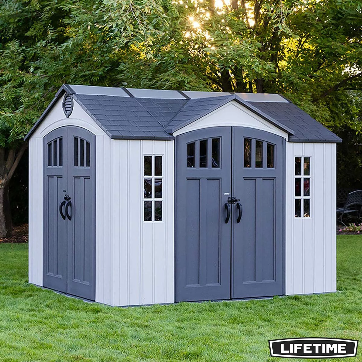 When you want extra space for lawn and garden storage while accenting the beauty of your garden, the Lifetime 10×8 Heavy Duty Dual Entry Plastic Storage Shed – 60467X has the design and features you need.