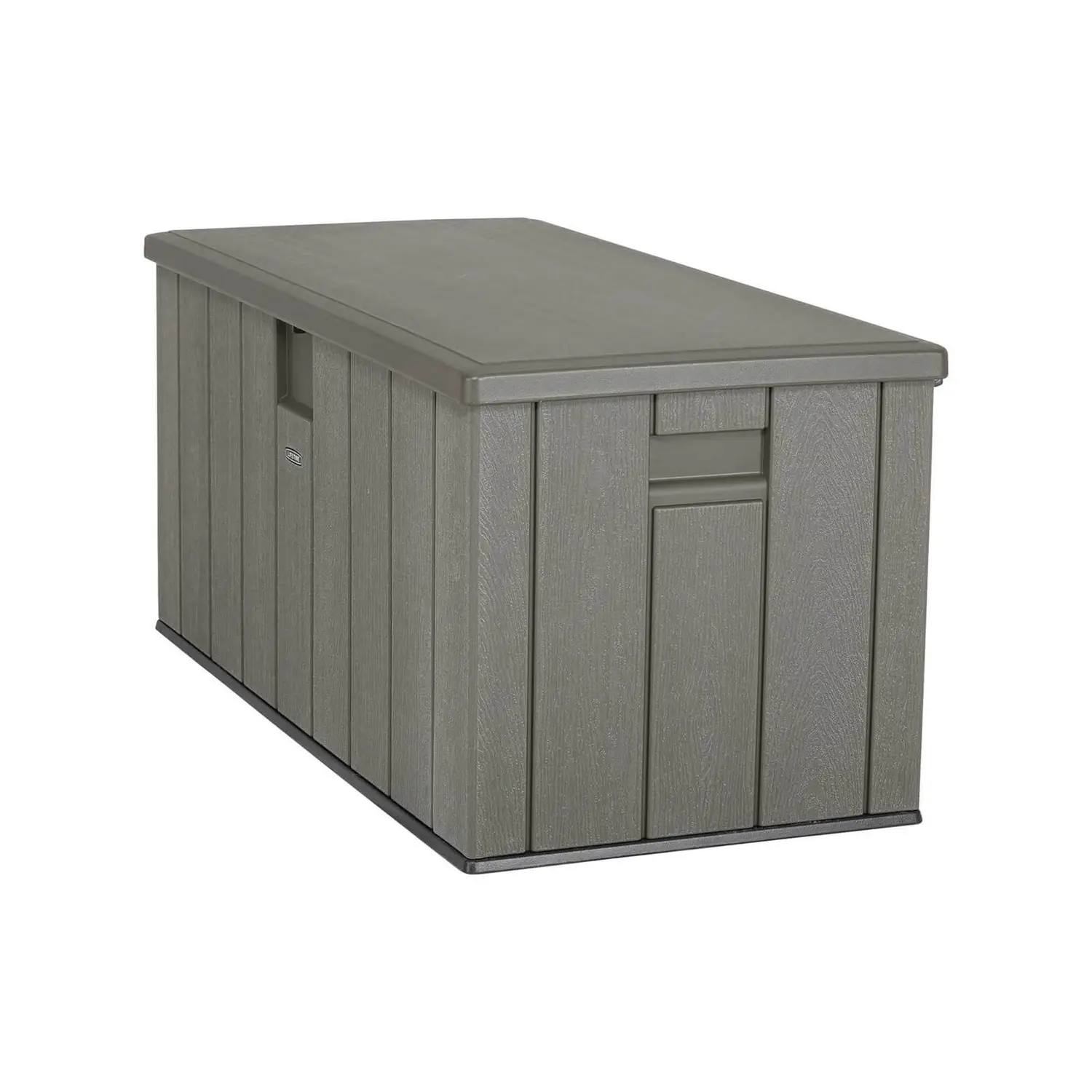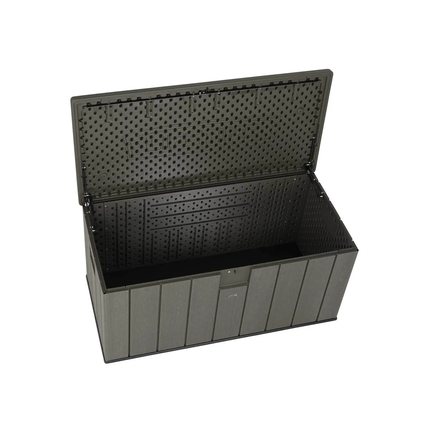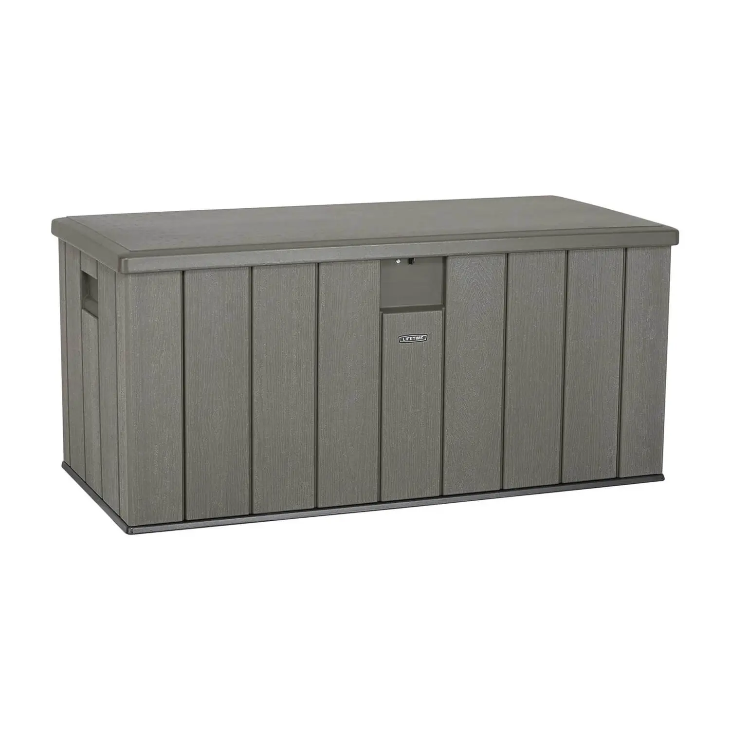 The lid is lockable (lock not included) to provide even greater security and has a controlled spring-hinge for easy opening and closing. It has moulded side handles for easy transport making it easy to move around your yard or patio and it is even sturdy enough to be used as a bench. The Lifetime Deck Box blends durability, convenience and style to create a versatile storage solution.