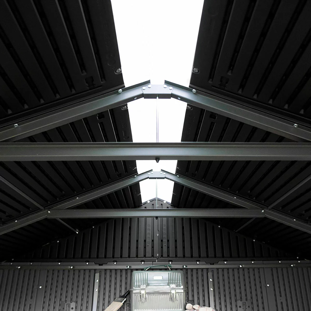 Enjoy abundant natural interior light with extra-large ridge skylights and door windows, as well as fresh air provided by screened vents. You can trust in the shed’s dual-wall, steel-reinforced construction, complete with UV resistant high-density polyethylene (HDPE) panelling and a stain and impact-resistant floor. Premium build materials contribute to excellent reliability, sturdiness, and resistance to the elements. No staining or painting is required, and the UV-protected finish will not fade in the sun or warp, crack, rot, or splinter.