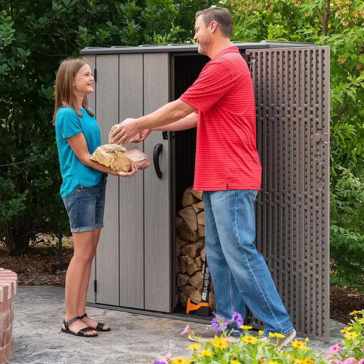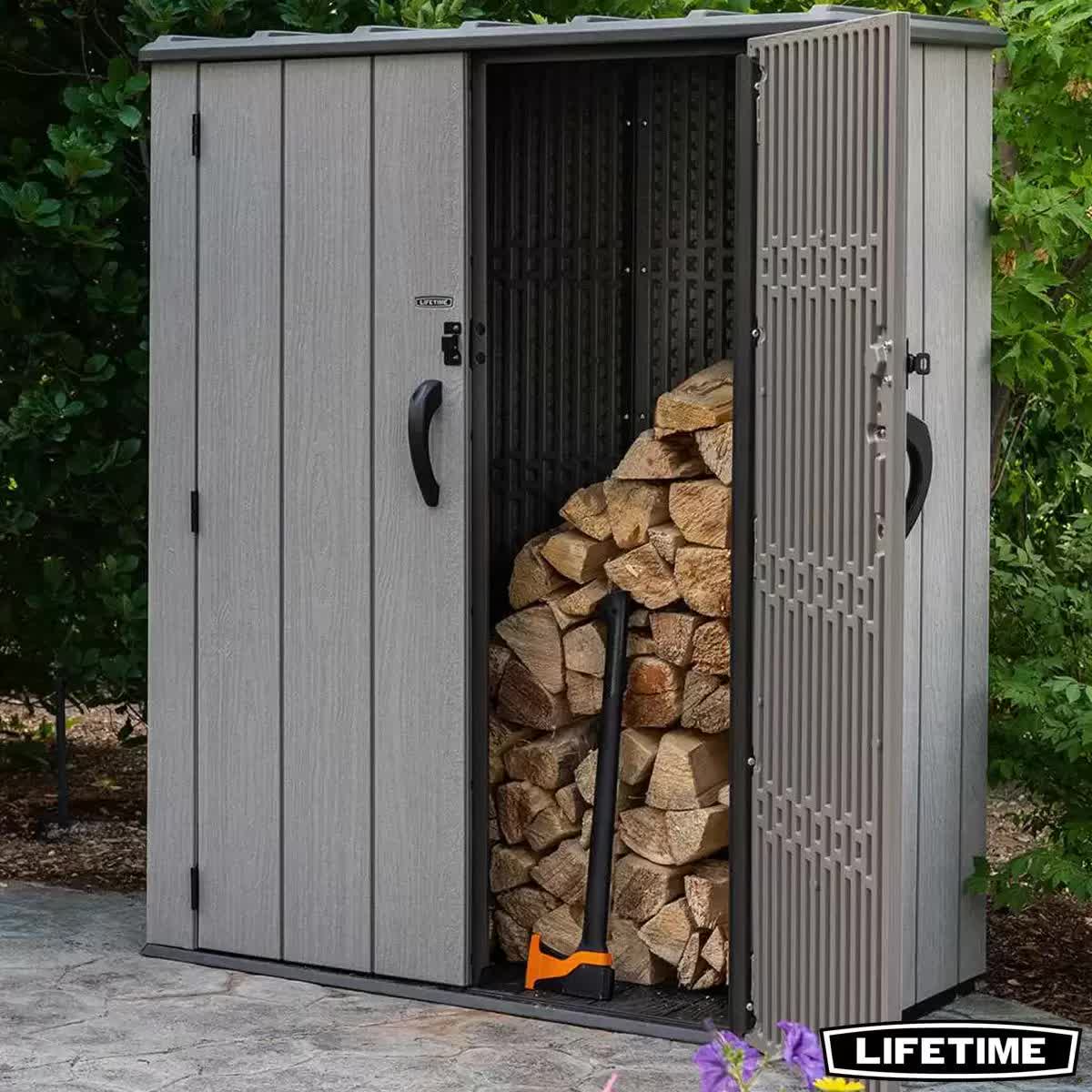Organise your outdoor space with this spacious and versatile Lifetime Heavy Duty Utility Vertical Storage Shed with Shelving -Model 60457 X.