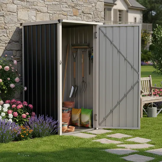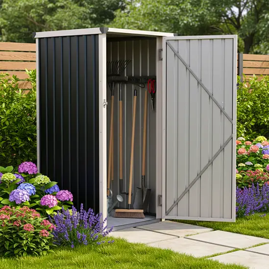 Crafted from high-quality metal, it is built to last, withstand various weather conditions, and maintain its modern appearance year after year. Its minimalist aesthetic blends seamlessly into any backyard style — from rustic farmhouses to contemporary gardens. Whether you are storing pots, soil bags, watering cans, or seasonal tools, this shed keeps everything tidy, dry, and ready to use.