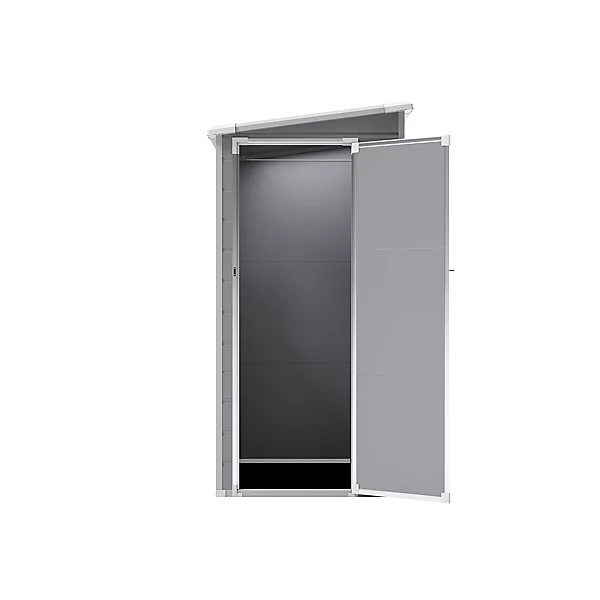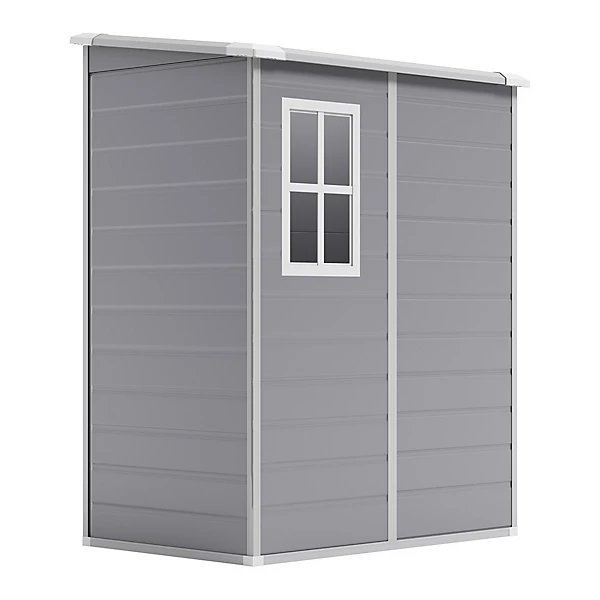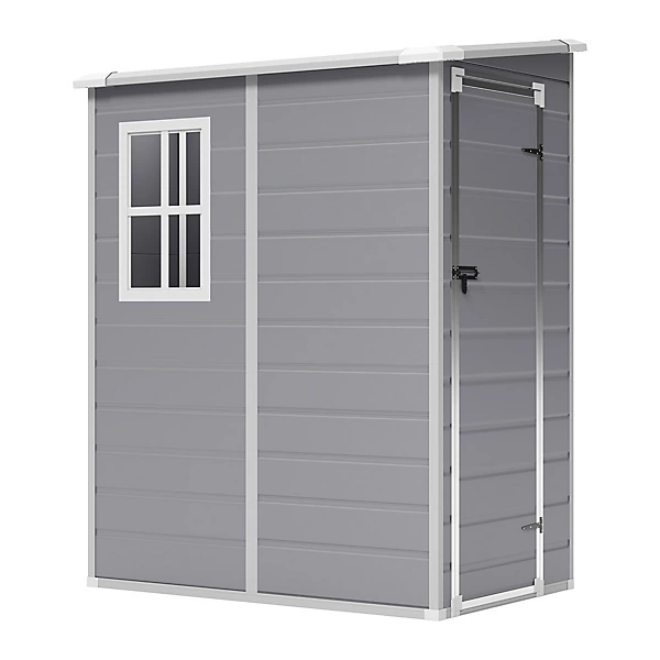 This Living and Home 4×5 Plastic Lean To Storage Shed with Integral Floor – Grey / Black is the perfect solution for keeping your garden tools and equipment organized and protected.