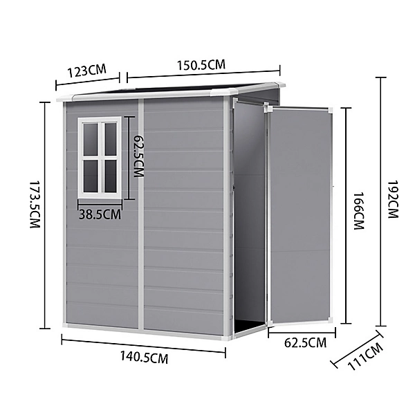 Equipped with a window, it not only enhances natural lighting but also keeps the interior dry and well-ventilated, while adding an aesthetic touch. The sloping roof effectively prevents the accumulation of rain and snow, reducing maintenance costs. Whether used as a garden storage shed or a utility room, it ensures that your tools are neatly organized.