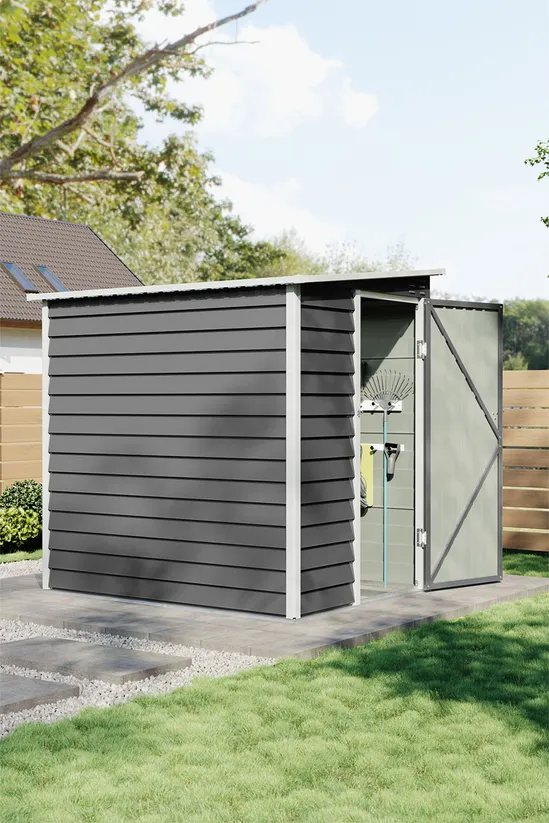 The Living and Home 4’x6′ Lean To Metal Shed – Grey is a compact and reliable choice for outdoor storage.