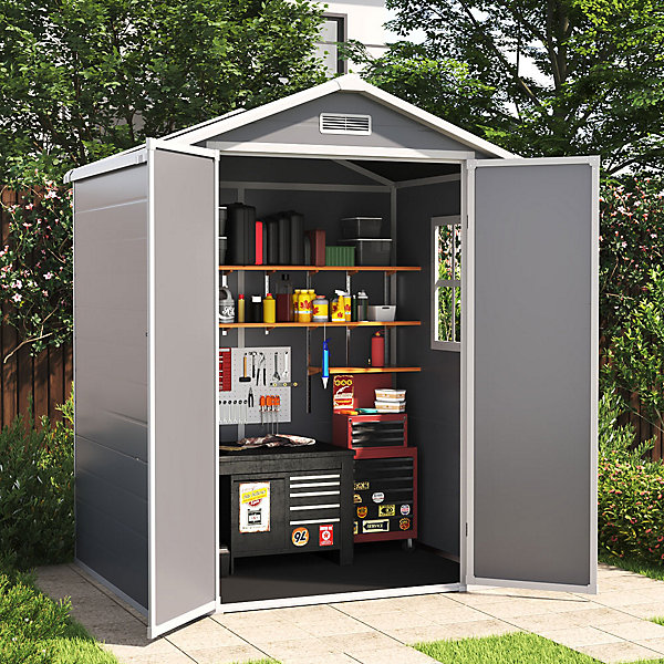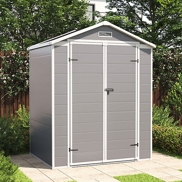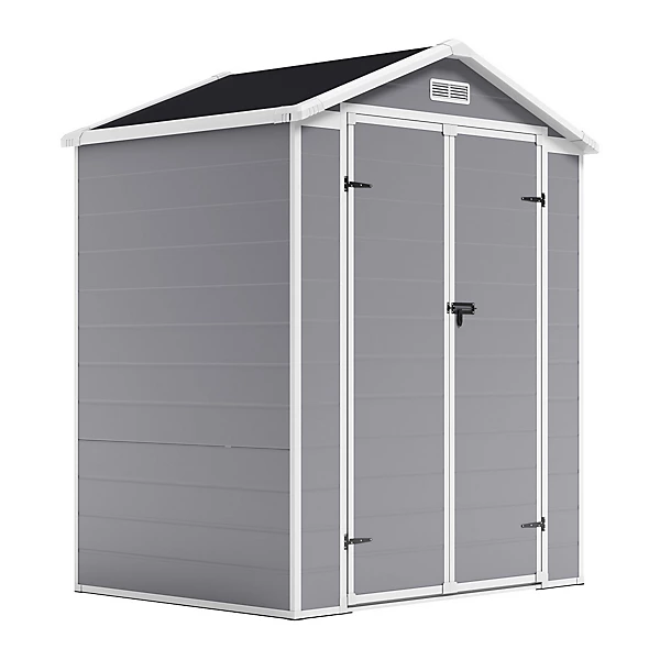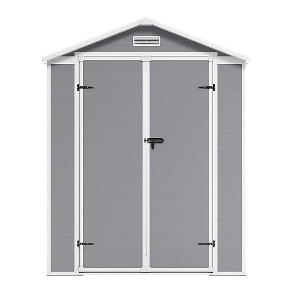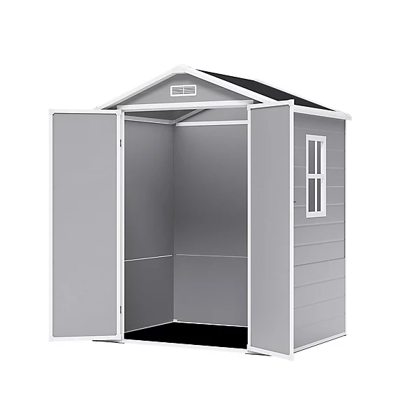 Living and Home 6×4 Plastic Storage Shed with Integral Floor- Grey / Black