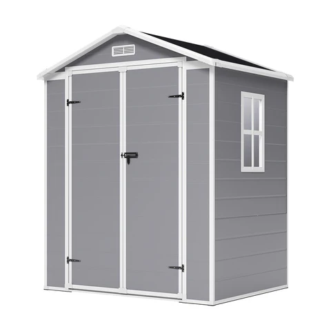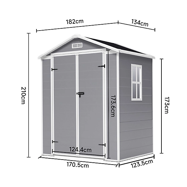 This Living and Home 6×4 Plastic Storage Shed with Integral Floor- Grey / Black is the perfect solution for keeping your garden tools and equipment organized and protected.