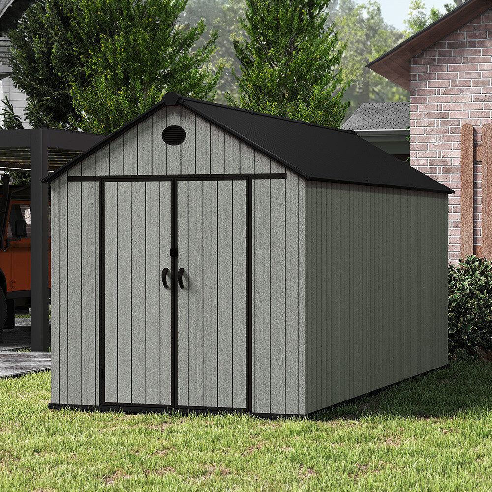 Constructed from 16mm thick PP plastic with a realistic woodgrain finish, it offers superior resistance to rot, rust, and weathering, ensuring your tools, equipment, and garden furniture remain safe and dry for years to come.