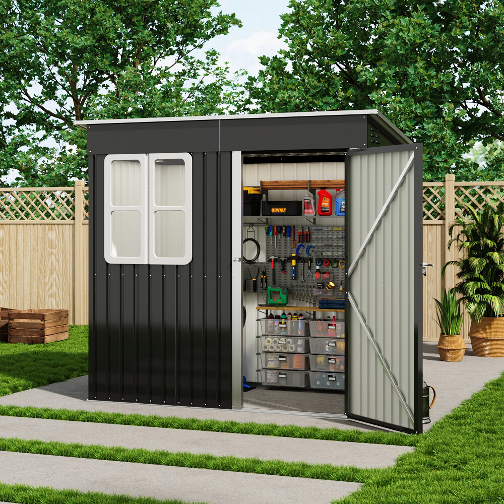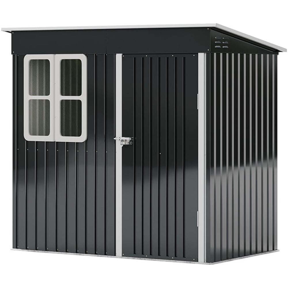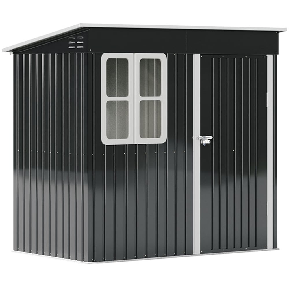 Living and Home 7×4 Metal Pent Shed with Window – Charcoal Black