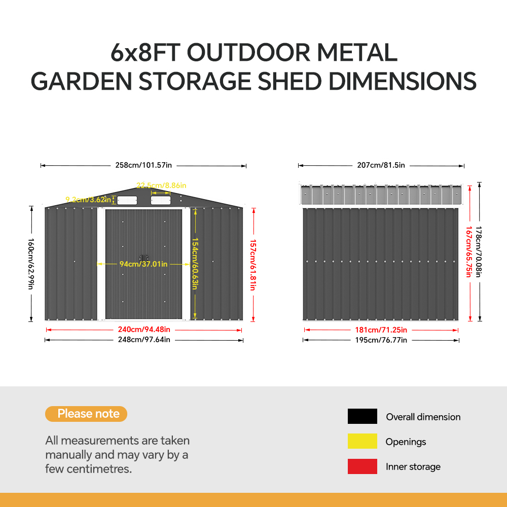Bring modern style and lasting order to your garden with this streamlined Living and Home 8×6 Apex Metal Shed with Foundation Grid – Anthracite Grey .