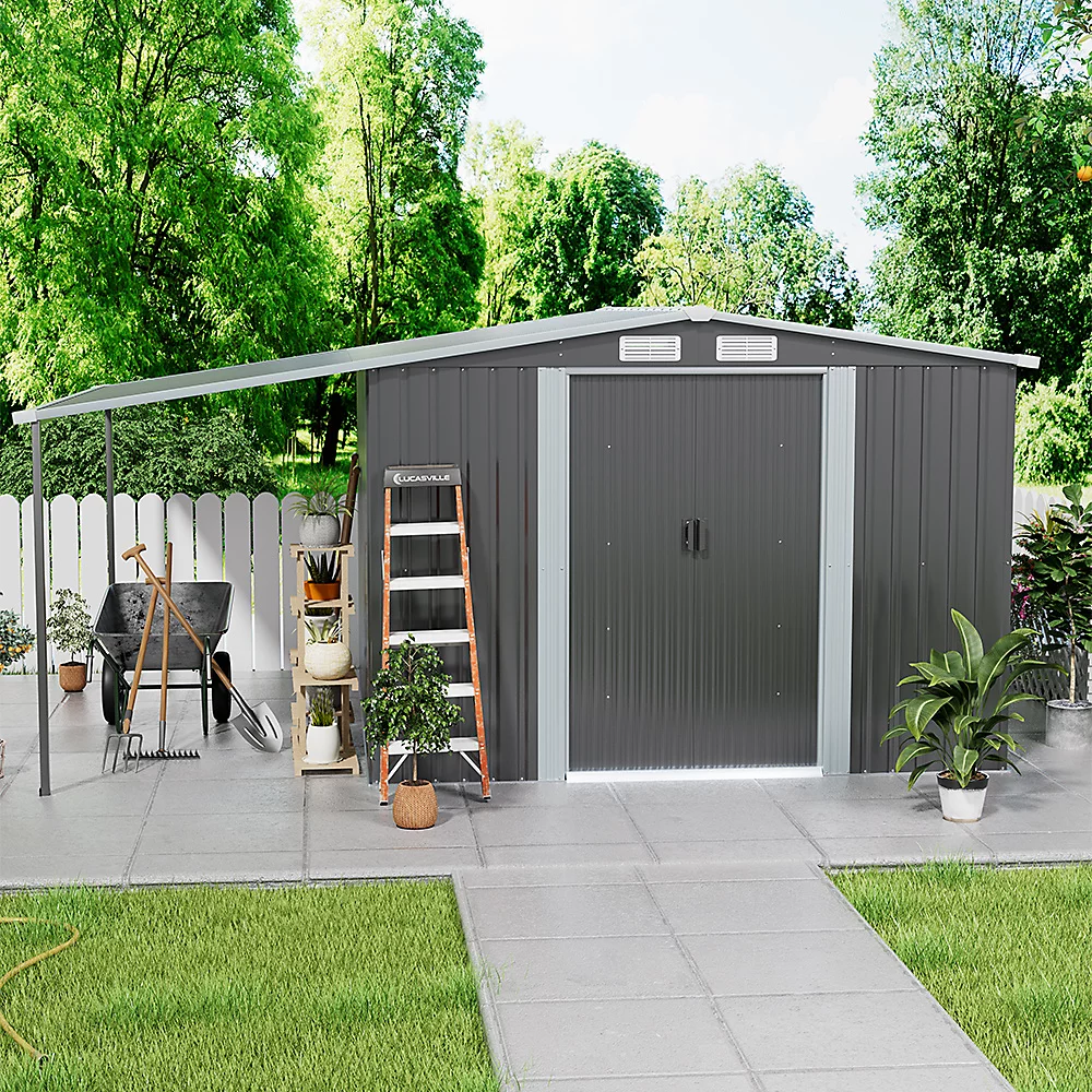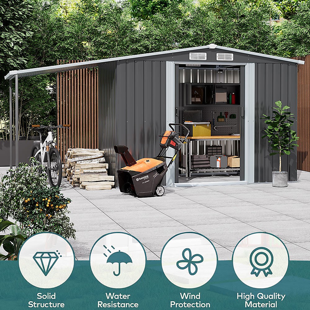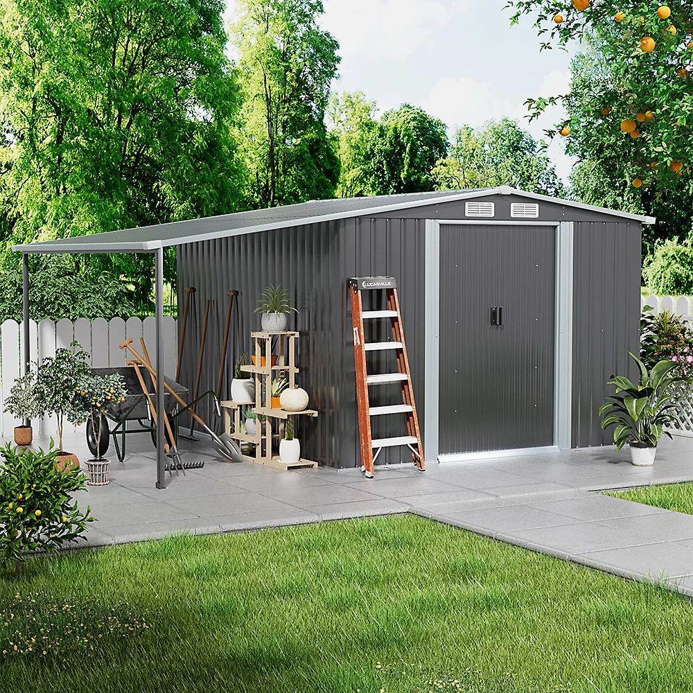 The Living and Home 8’x8′ Apex Metal Shed with Lean To Canopy – Dark Grey has made it super easy to store all your large outdoor equipment and an assortment of tools.