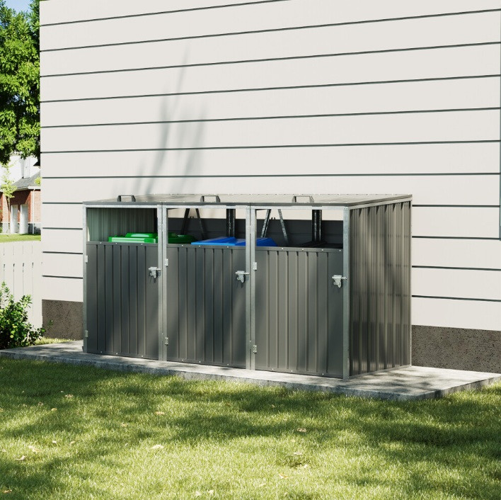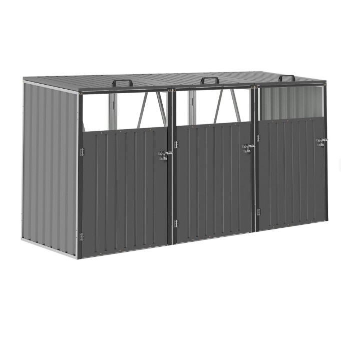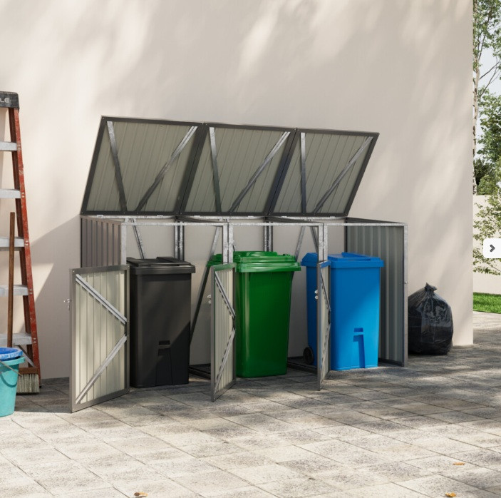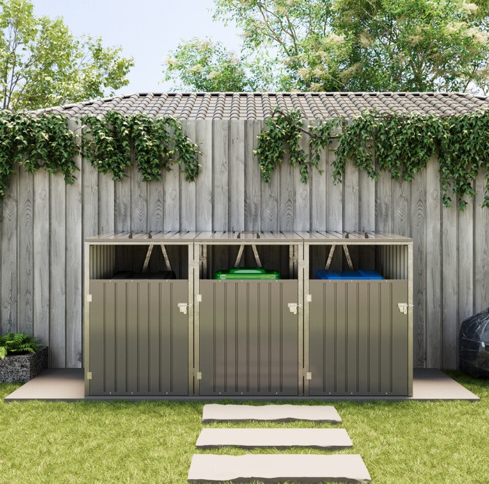 The Living and Home Triple Metal Bin Store – Light Grey offers a stylish and practical solution! Keep your bins neatly hidden away, protected from the elements, and out of sight.