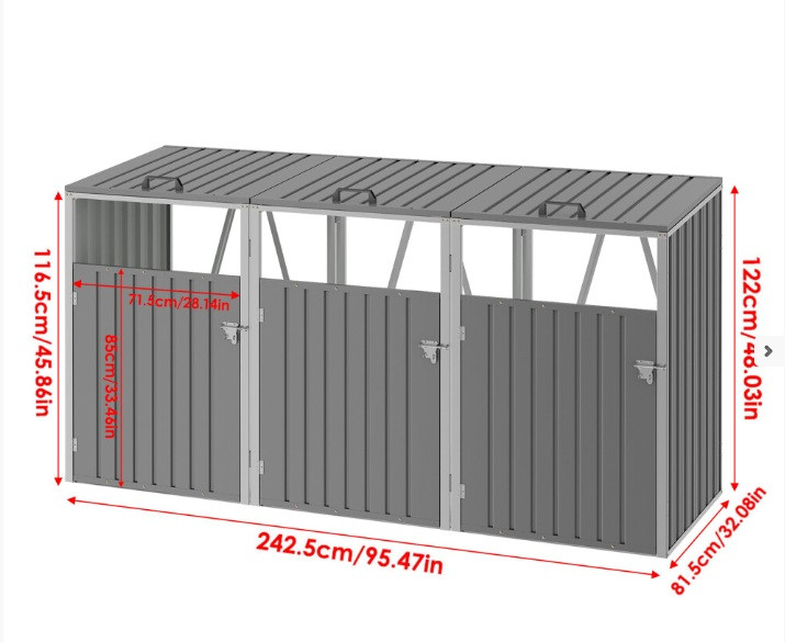 Fits 3 x Standard Wheelie Bin ( 107cm Height x 58cm Width x 74cm Depth)