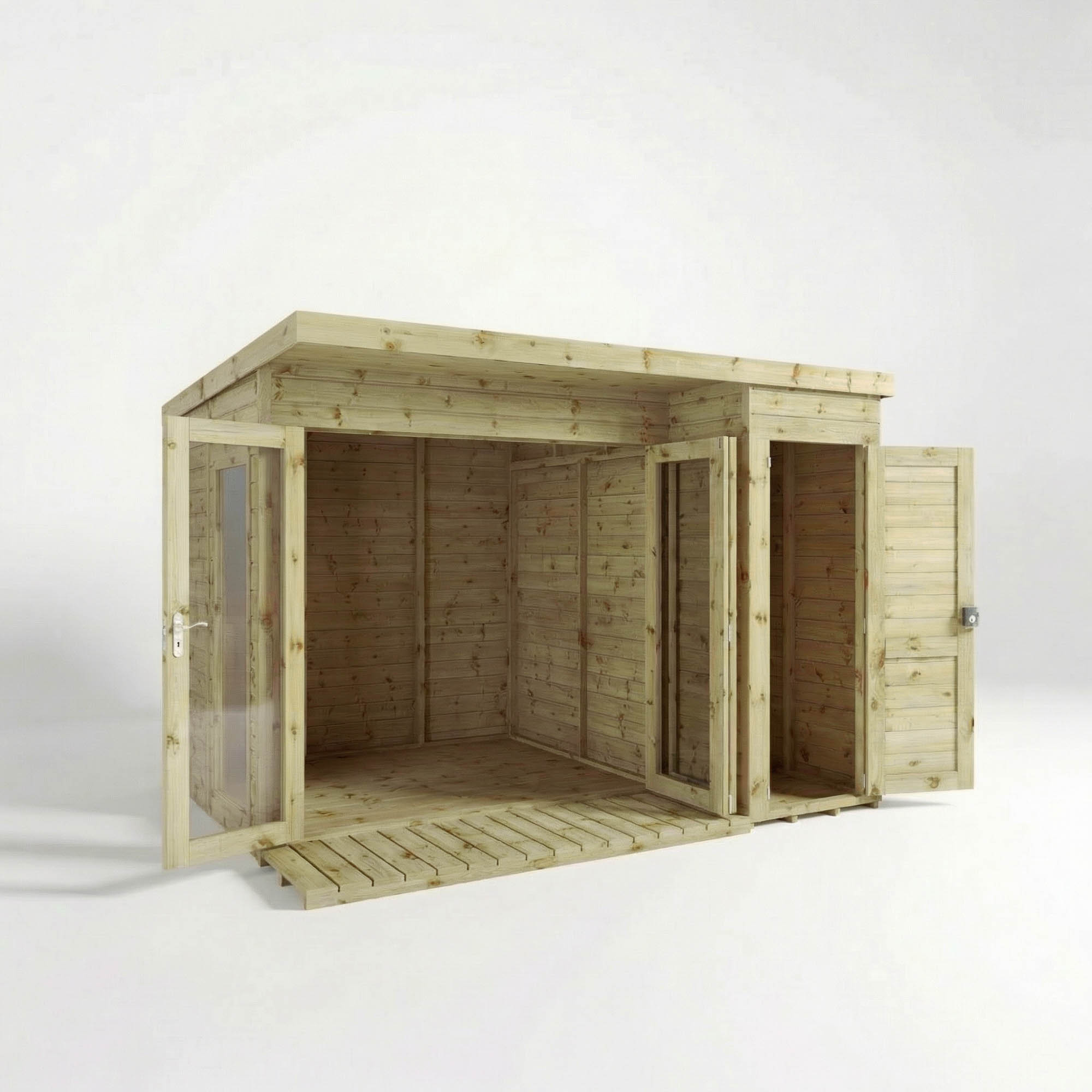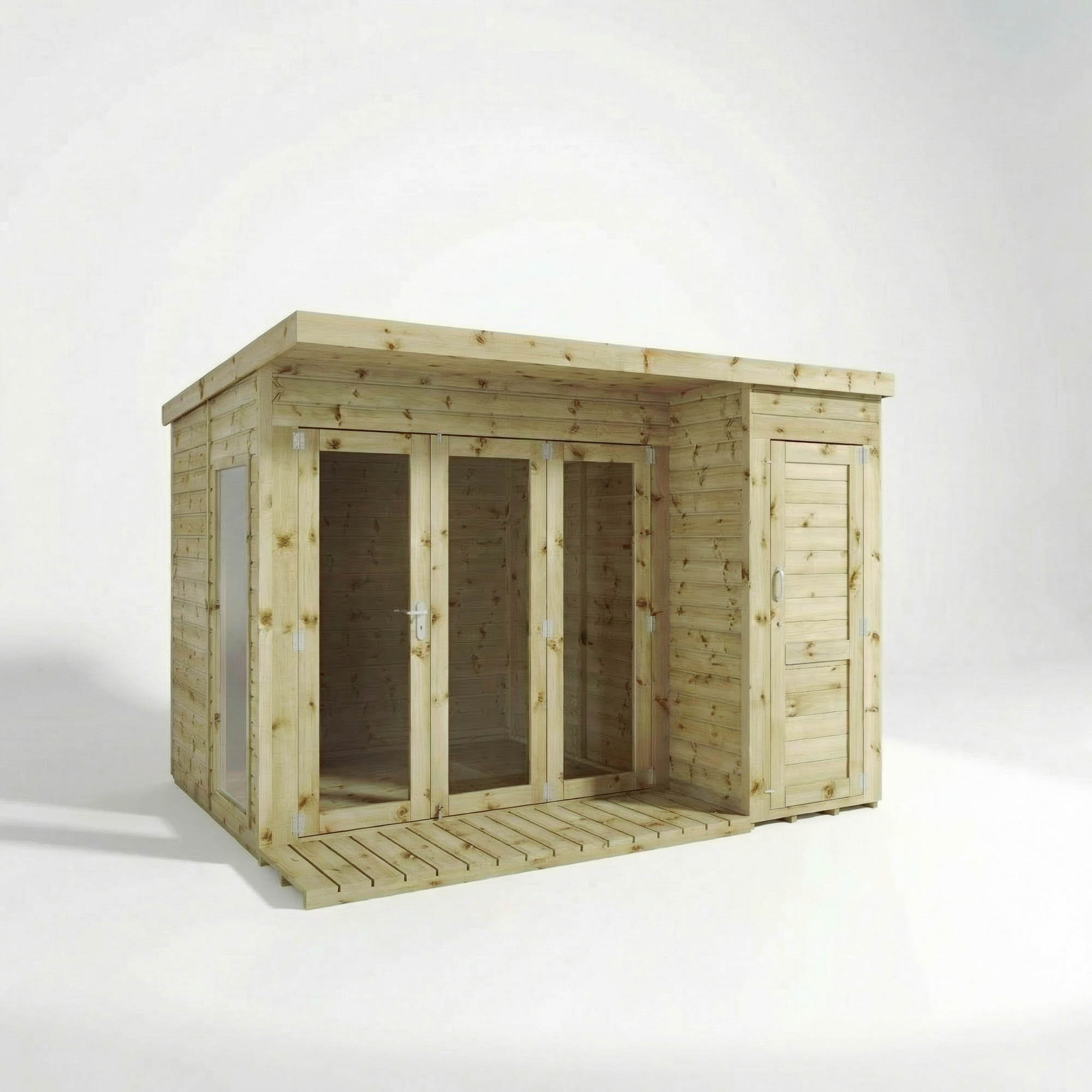 Mercia 10 x 8 Premium Green Dip Treatment Garden Room Summerhouse with Side Shed