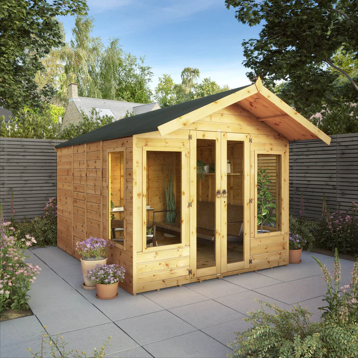The Mercia 10’x 8′ Premium Sussex Traditional Summerhouse provides a large open space to relax in on a bright summer’s day.