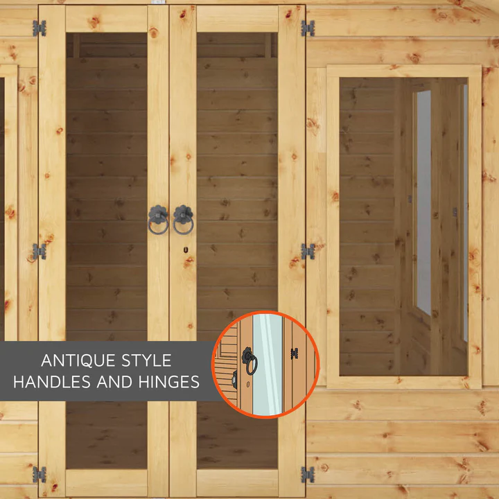 The Mercia 10’x 8′ Premium Sussex Traditional Summerhouse is a spacious and stylish summerhouse that offers the perfect spot to sit back and relax during the summer months. The large styrene glazed windows allow light to flood the interior and styrene glazed French doors open out to create a light, airy and welcoming space to enjoy. The walls of this summerhouse are constructed using premium horizontal interlocking tongue and groove boards with a shiplap profile.