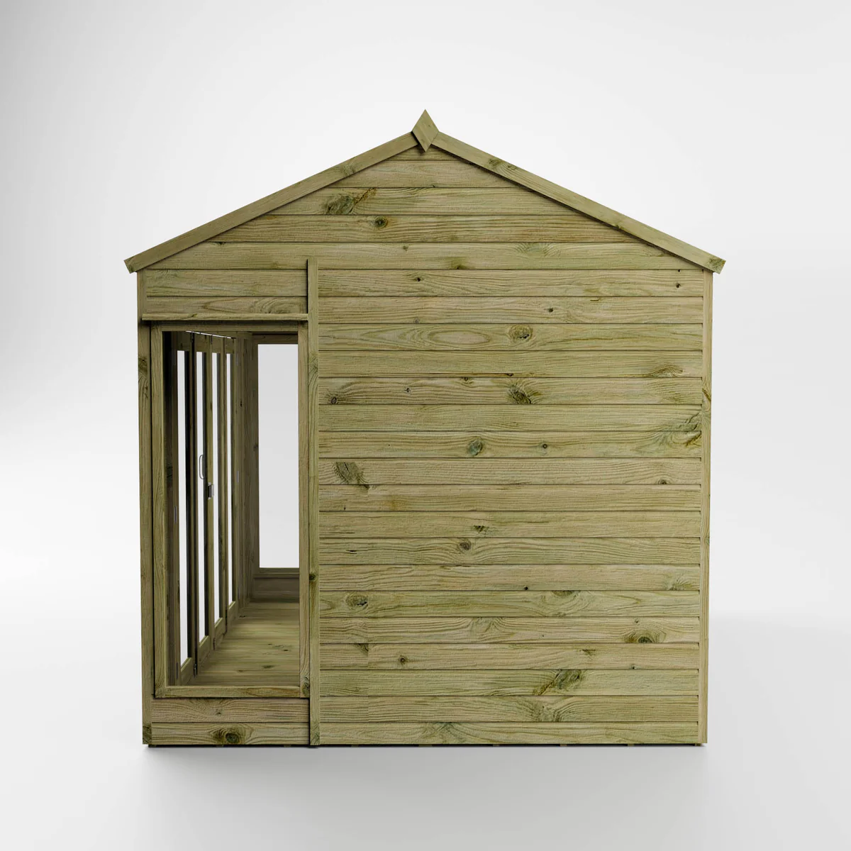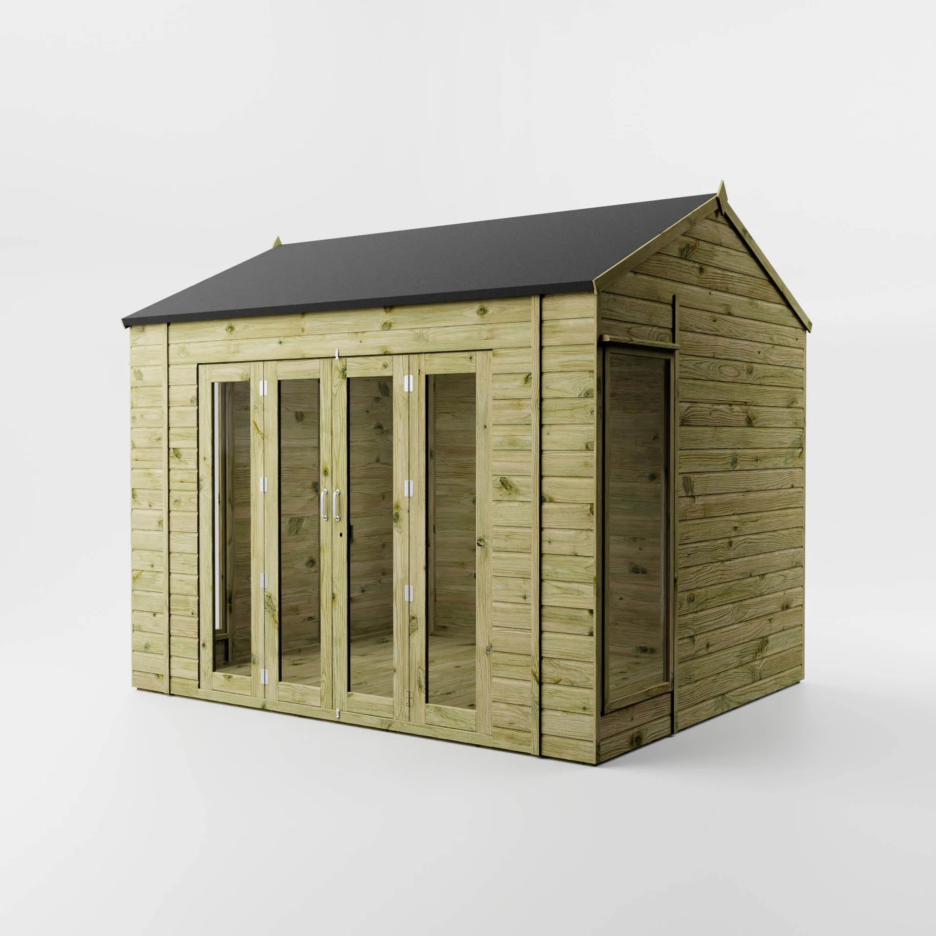 The Mercia 10’x 8′ Vermont Green Dipped Treatment Shiplap Timber Summerhouse provides a large open space to relax in on a bright summer’s day. The fully glazed bi-folding double doors bring the outdoors in, ideal for a little shelter when hosting a garden party.