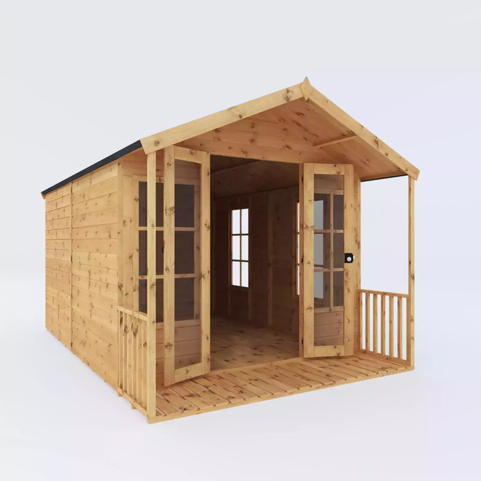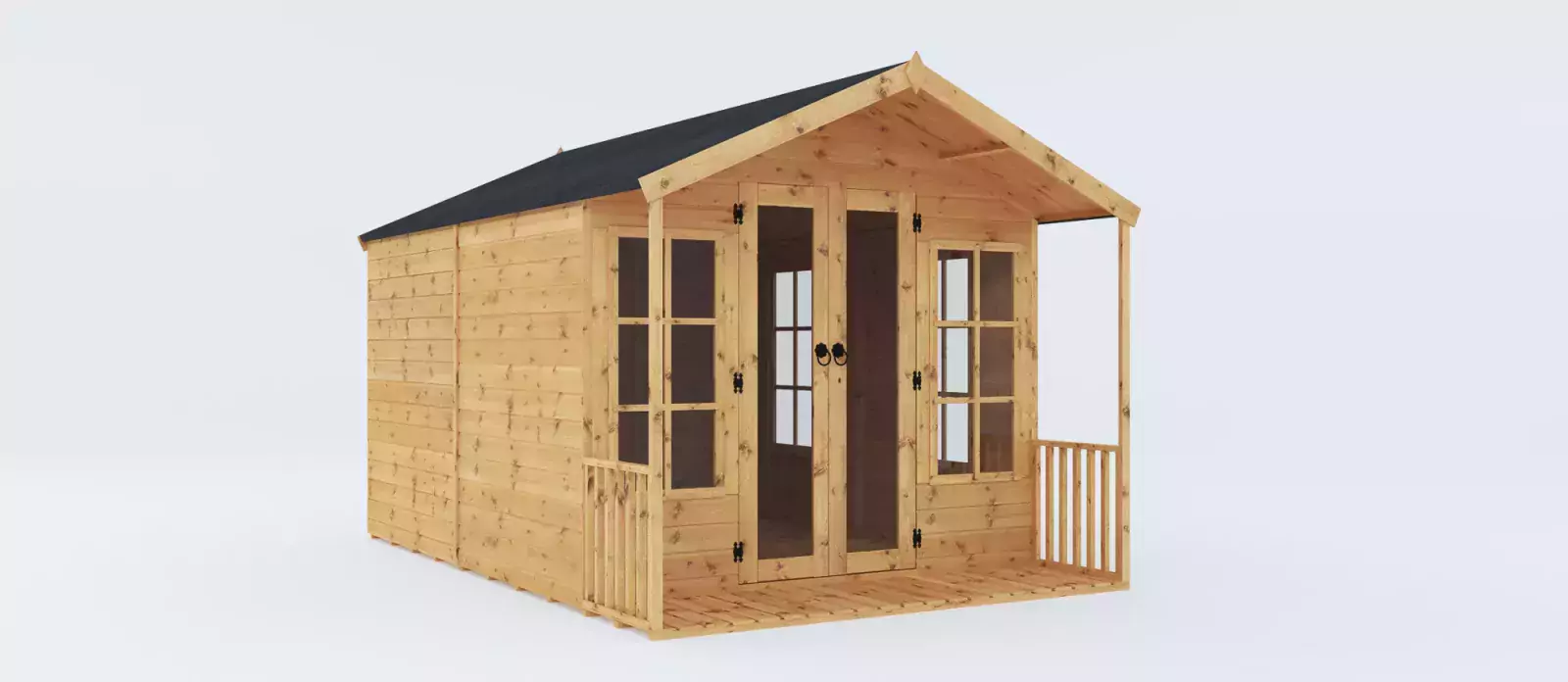 The Mercia 12’x 8′ Premium Wessex Traditional Summerhouse provides a large open space to relax in on a bright summer’s day.