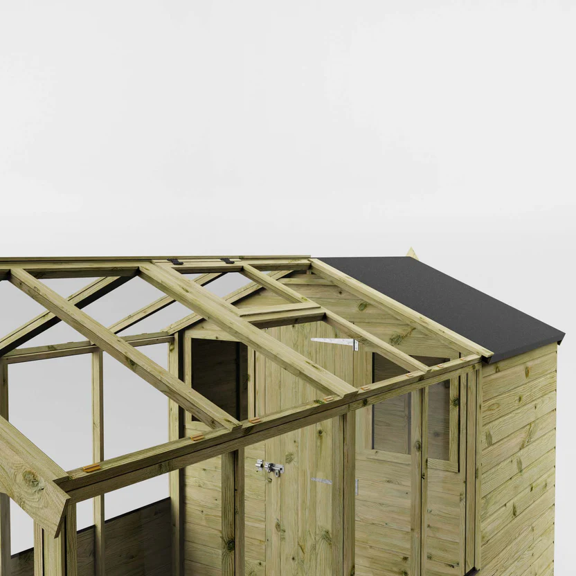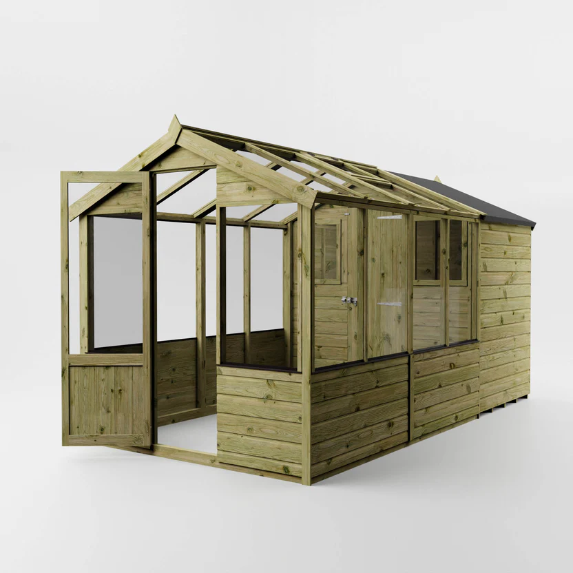 The stylish and practical Mercia 12’x6′ Traditional Green Dipped Treatment Apex Greenhouse Combi Shed is ideal to pot and grow plants or flowers as well as store garden equipment and accessories.