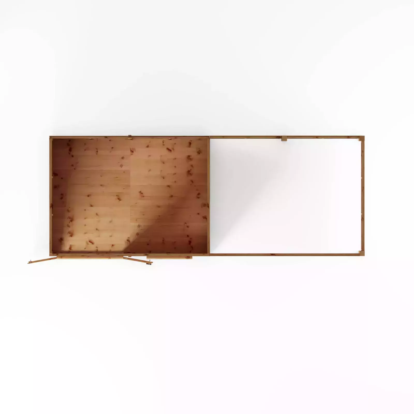 Sit back and relax inside the Mercia 16’x 6′ Maine Pent Timber Summerhouse and Patio Area. With fully glazed French doors, and a fixed full length window, all glazed with shatterproof styrene, the interior of this summerhouse is bright, airy and welcoming. The doors are finished with brushed chrome handles and hinges for a contemporary aesthetic.