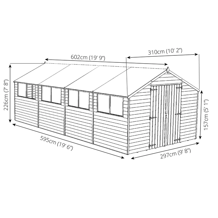 The Mercia 20×10 Overlap Timber Apex Workshop is perfect for those who are on a budget. A must have for any garden, this shed is the perfect storage space for your garden tools, equipment, furniture, and outdoor games.
