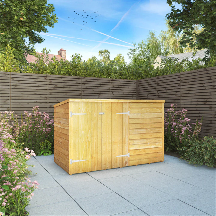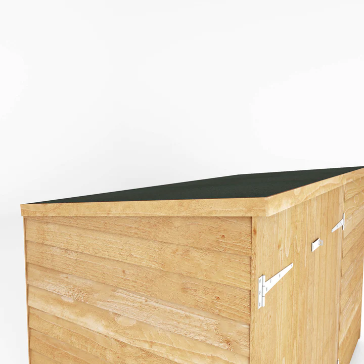 The Mercia 3’x6′ Overlap Timber Pent Bike Storage Shed is the ideal solution for storing your bicycles in a secure place. The pent roof design promotes water to run off the building and shed roof felt is supplied to help protect against the elements. The overlap storage unit features double doors which have been ledged for extra support and provide easy access.
