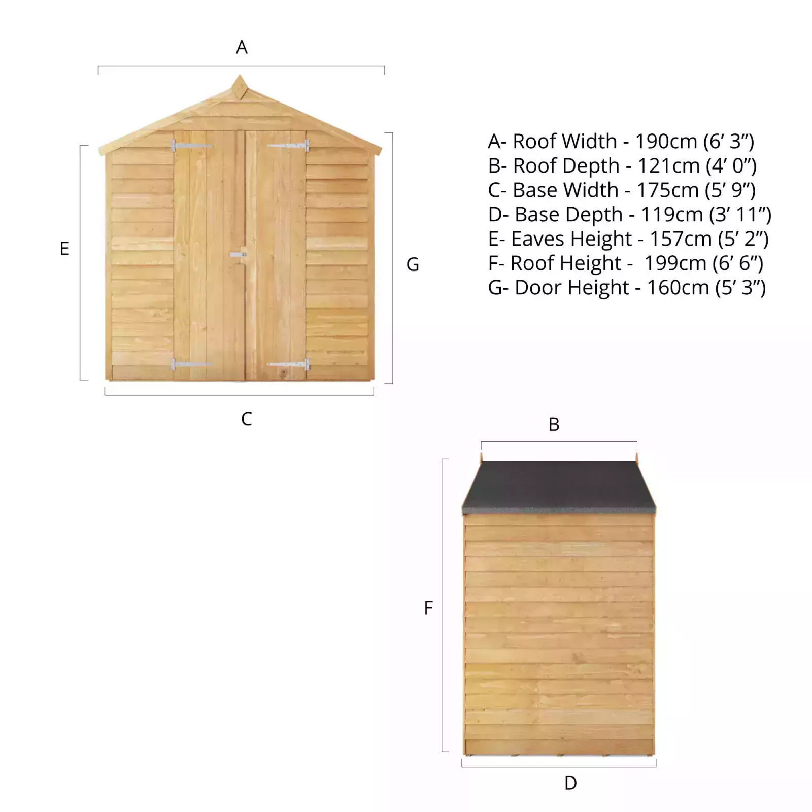 The walls of this shed are constructed using horizontal boards that overlap each other. This traditional method of construction creates solid panels that encourage rain water to run off the building, protecting your stored items from the elements. Complete with thick wooden framing to support the overlap panelling internally, this building has a rigid and long-lasting structure.