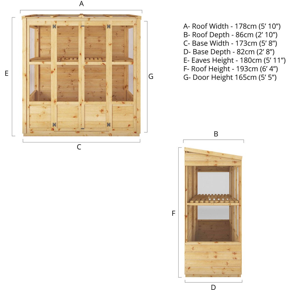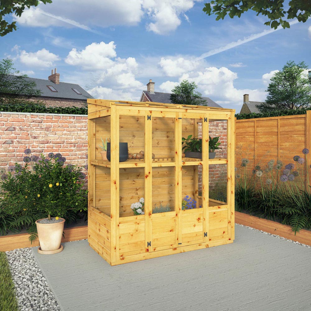 The Mercia 6’x3′ Timber Traditional Tall Wall Greenhouse is perfect for those with smaller gardens or who only require a small space for potting produce and storing gardening tools. Made from quality materials this greenhouse will look great and last the test of time. This garden building benefits from internal potting shelves, great for growing a range of vegetables and flowers all year around.